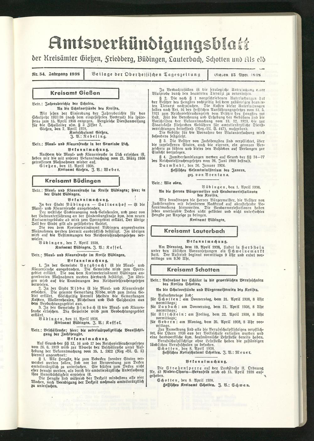 Amtsverkündigungsblatt der Landkreise Gießen, Friedberg, Büdingen, Lauterbach und Alsfeld. 1937-1939