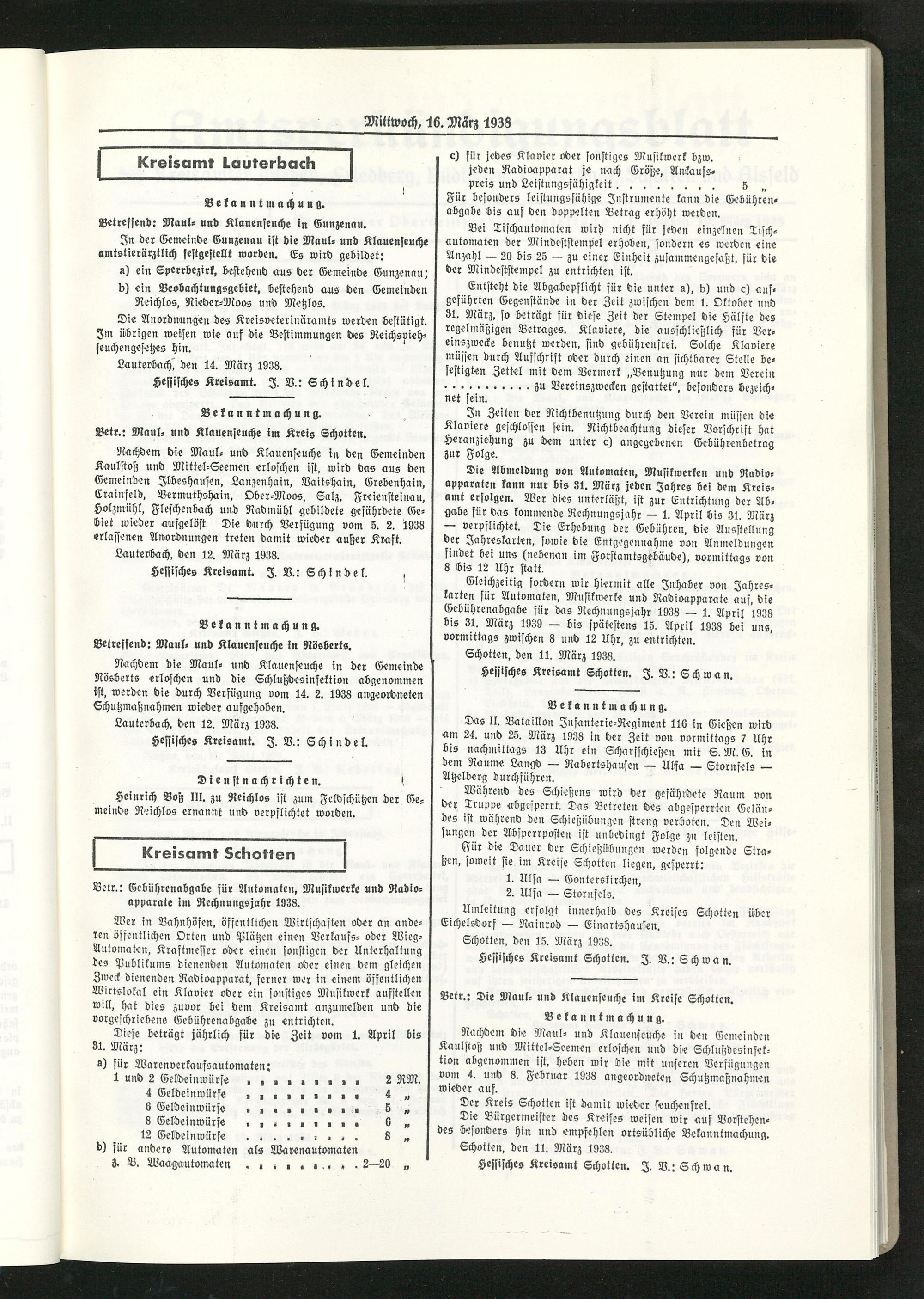Amtsverkündigungsblatt der Landkreise Gießen, Friedberg, Büdingen, Lauterbach und Alsfeld. 1937-1939