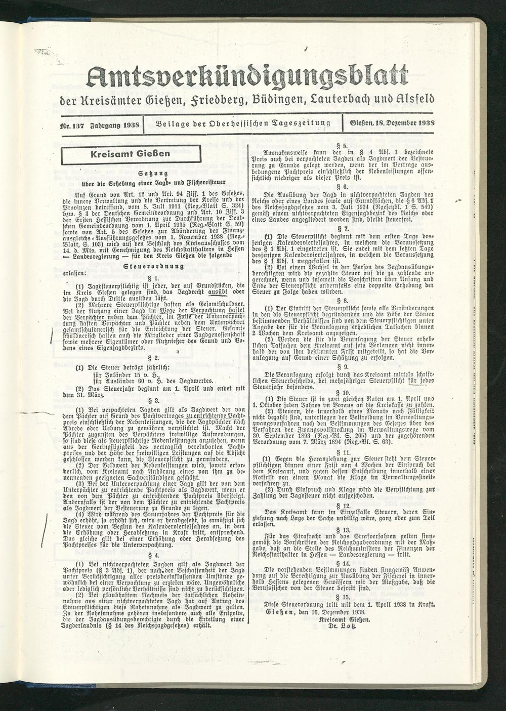 Amtsverkündigungsblatt der Landkreise Gießen, Friedberg, Büdingen, Lauterbach und Alsfeld. 1937-1939