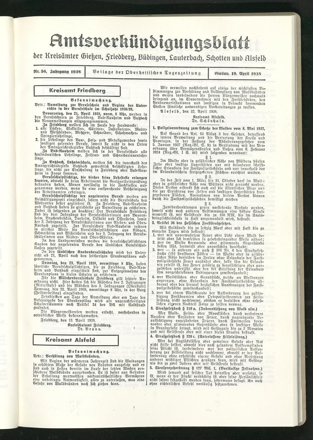 Amtsverkündigungsblatt der Landkreise Gießen, Friedberg, Büdingen, Lauterbach und Alsfeld. 1937-1939