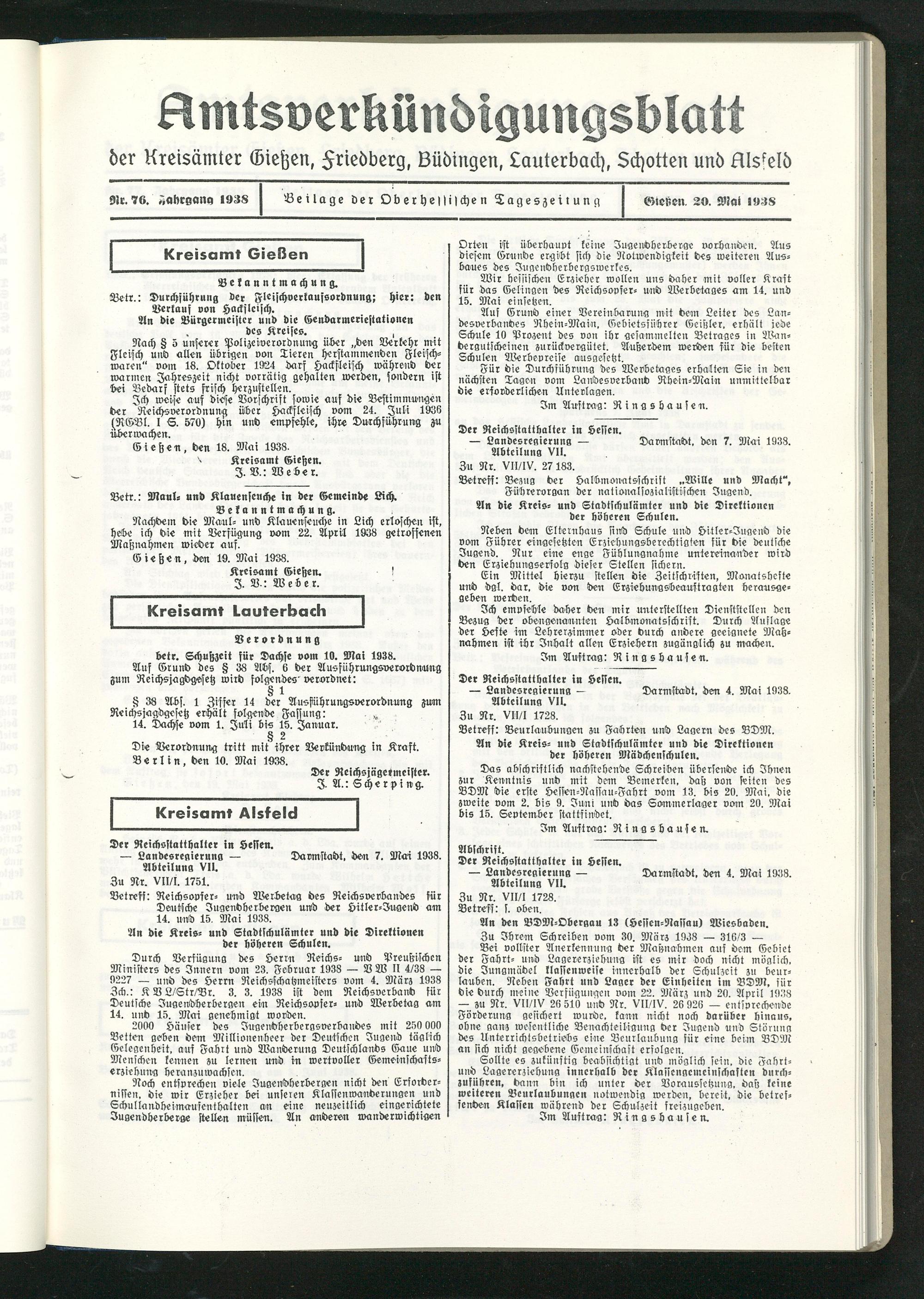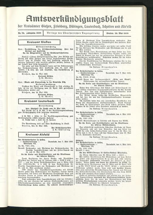Amtsverkündigungsblatt der Landkreise Gießen, Friedberg, Büdingen, Lauterbach und Alsfeld. 1937-1939