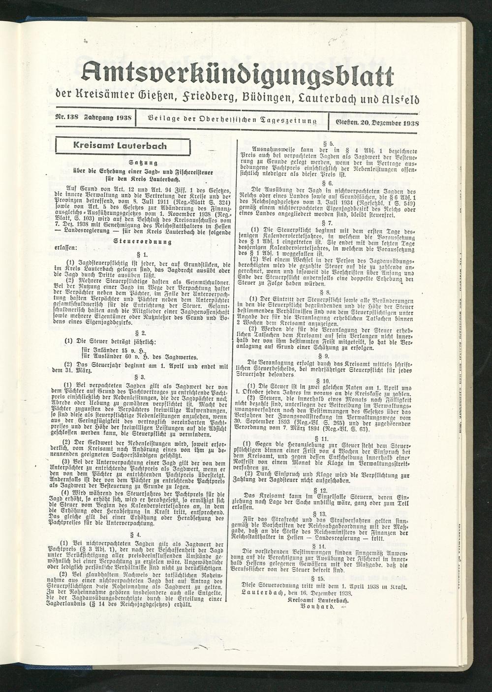 Amtsverkündigungsblatt der Landkreise Gießen, Friedberg, Büdingen, Lauterbach und Alsfeld. 1937-1939