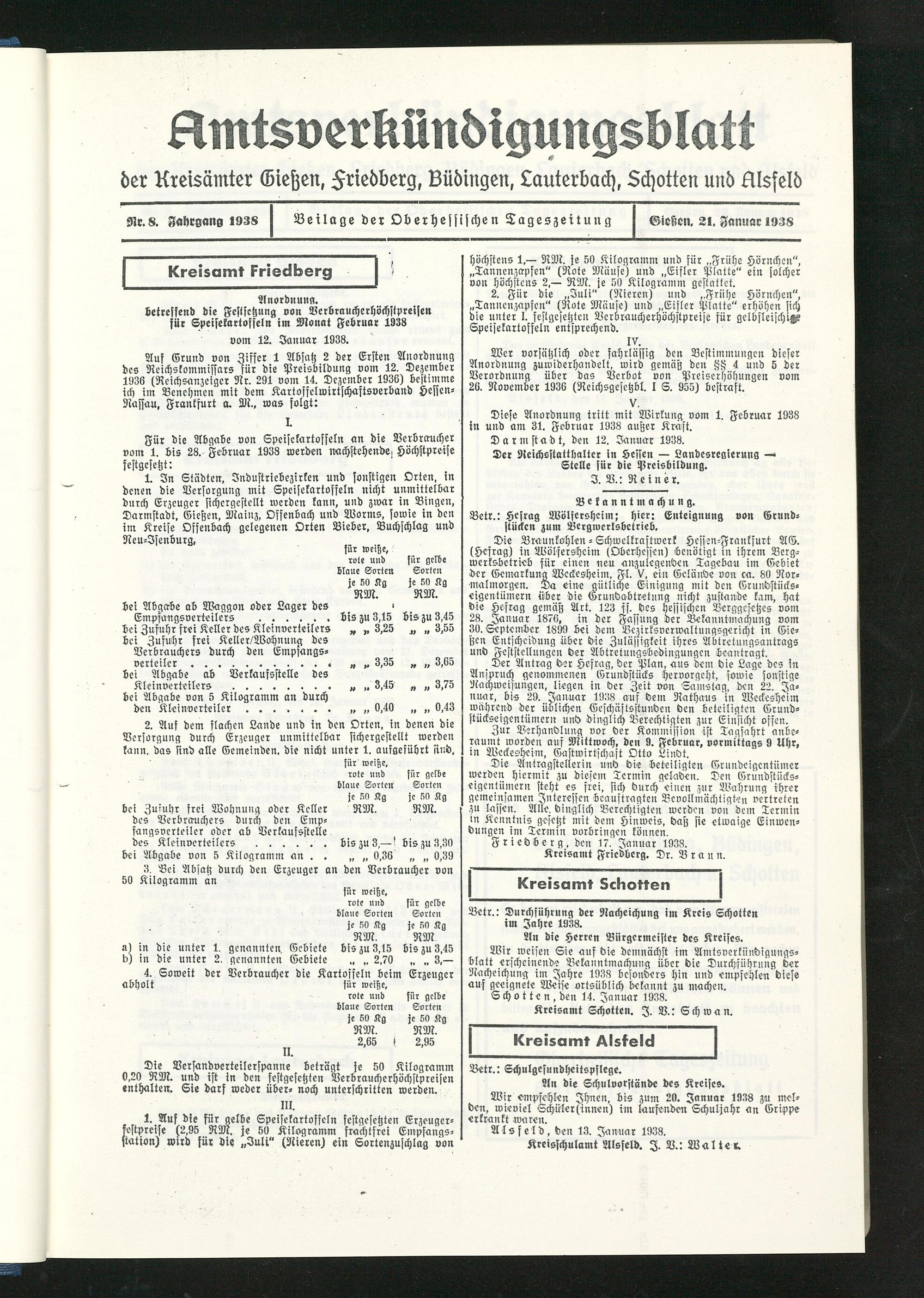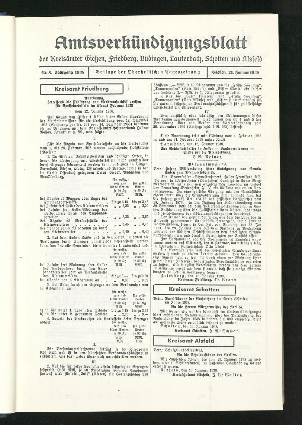 Amtsverkündigungsblatt der Landkreise Gießen, Friedberg, Büdingen, Lauterbach und Alsfeld. 1937-1939