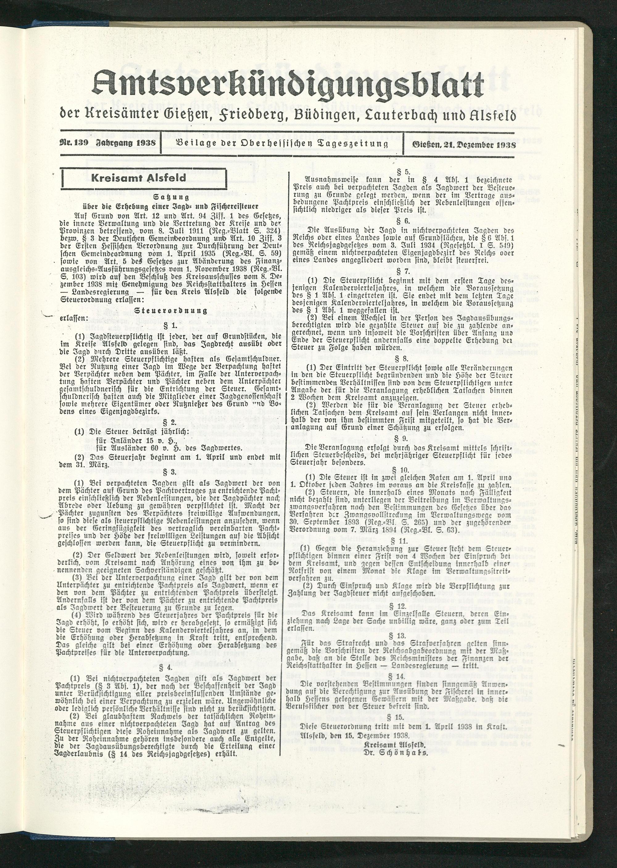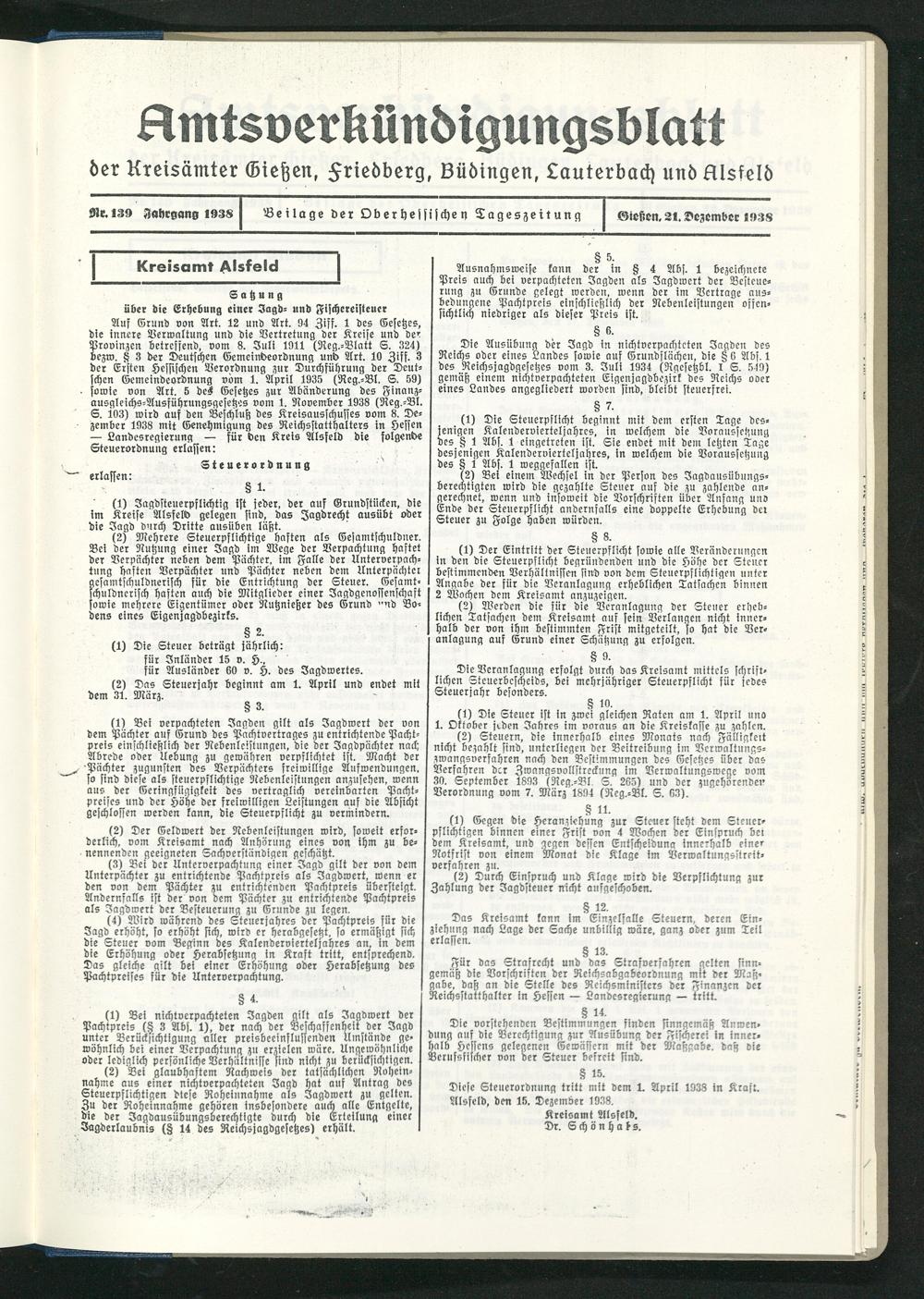 Amtsverkündigungsblatt der Landkreise Gießen, Friedberg, Büdingen, Lauterbach und Alsfeld. 1937-1939