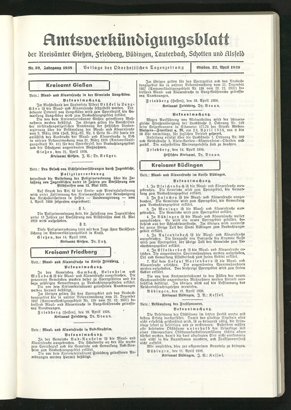 Amtsverkündigungsblatt der Landkreise Gießen, Friedberg, Büdingen, Lauterbach und Alsfeld. 1937-1939
