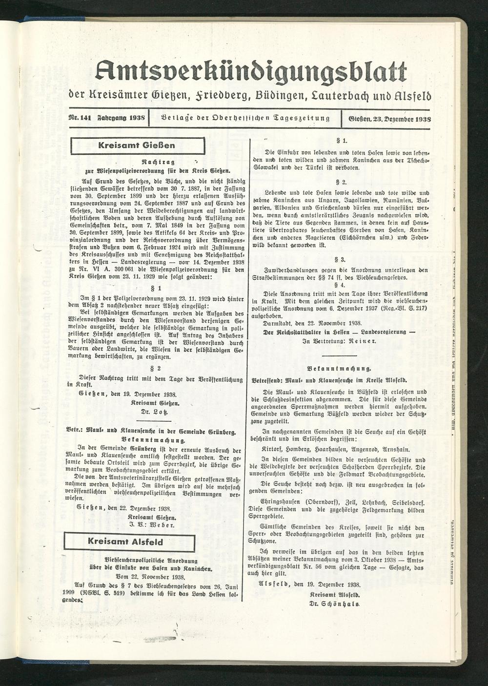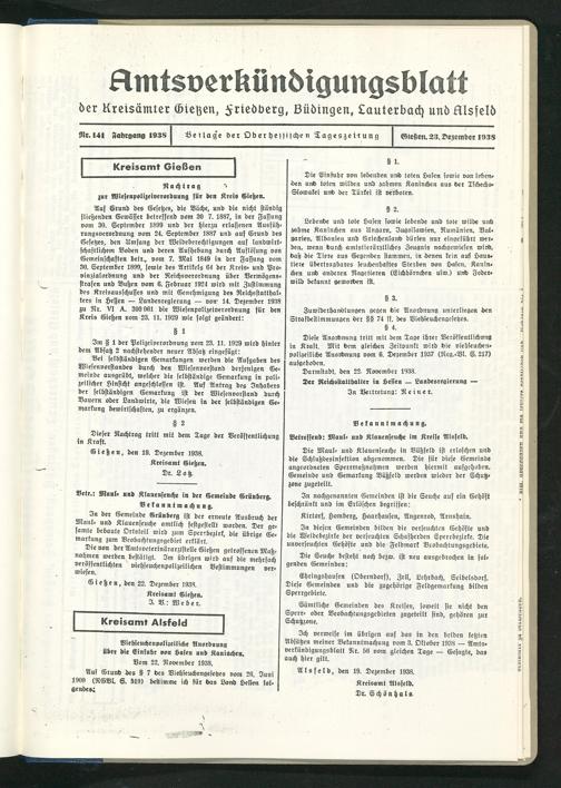 Amtsverkündigungsblatt der Landkreise Gießen, Friedberg, Büdingen, Lauterbach und Alsfeld. 1937-1939