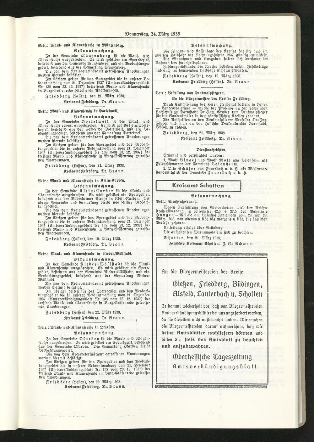 Amtsverkündigungsblatt der Landkreise Gießen, Friedberg, Büdingen, Lauterbach und Alsfeld. 1937-1939
