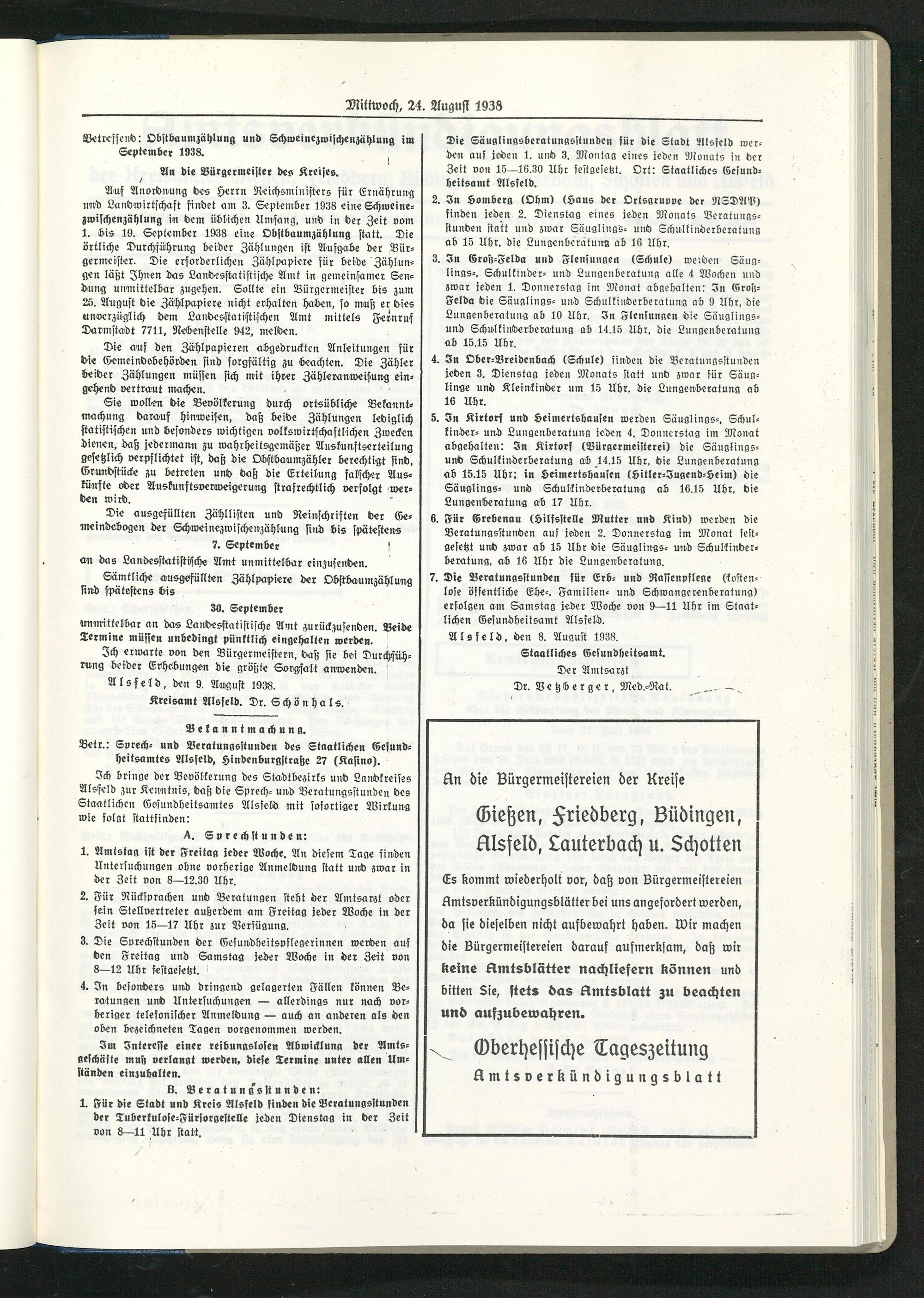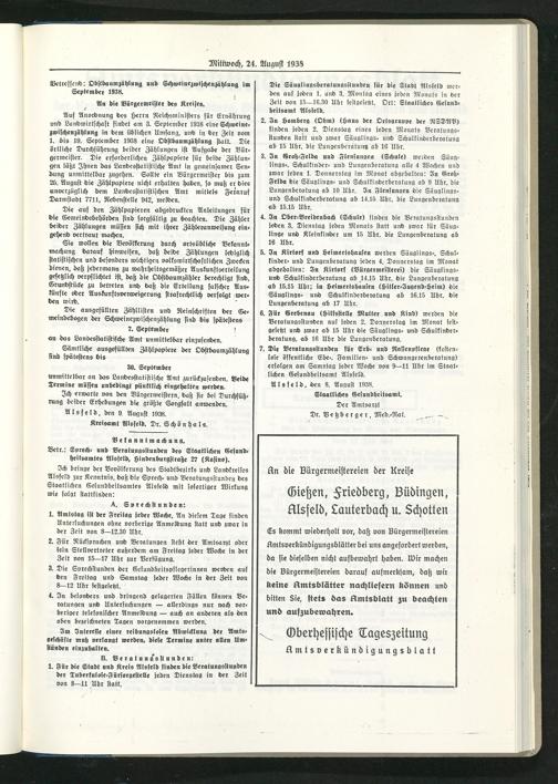Amtsverkündigungsblatt der Landkreise Gießen, Friedberg, Büdingen, Lauterbach und Alsfeld. 1937-1939
