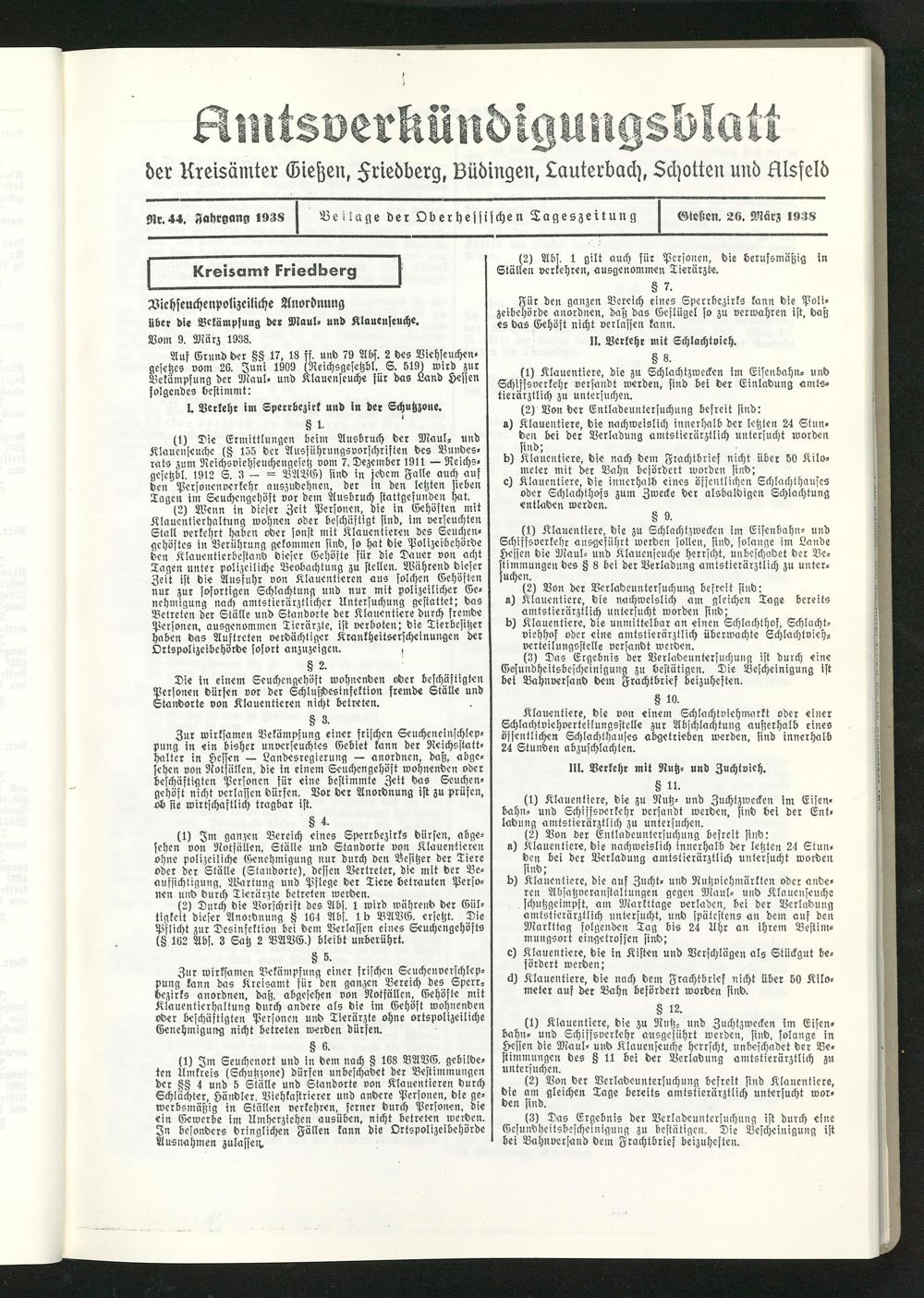 Amtsverkündigungsblatt der Landkreise Gießen, Friedberg, Büdingen, Lauterbach und Alsfeld. 1937-1939