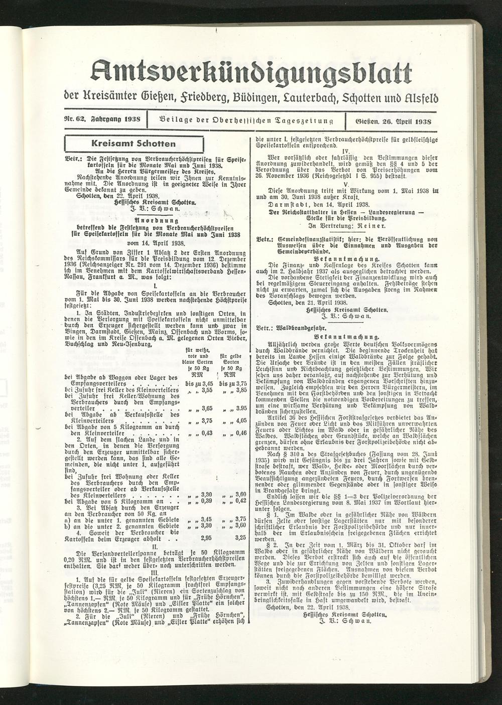 Amtsverkündigungsblatt der Landkreise Gießen, Friedberg, Büdingen, Lauterbach und Alsfeld. 1937-1939