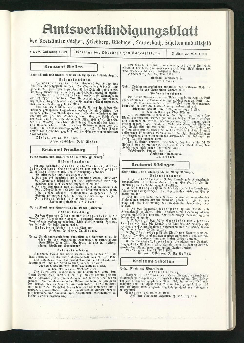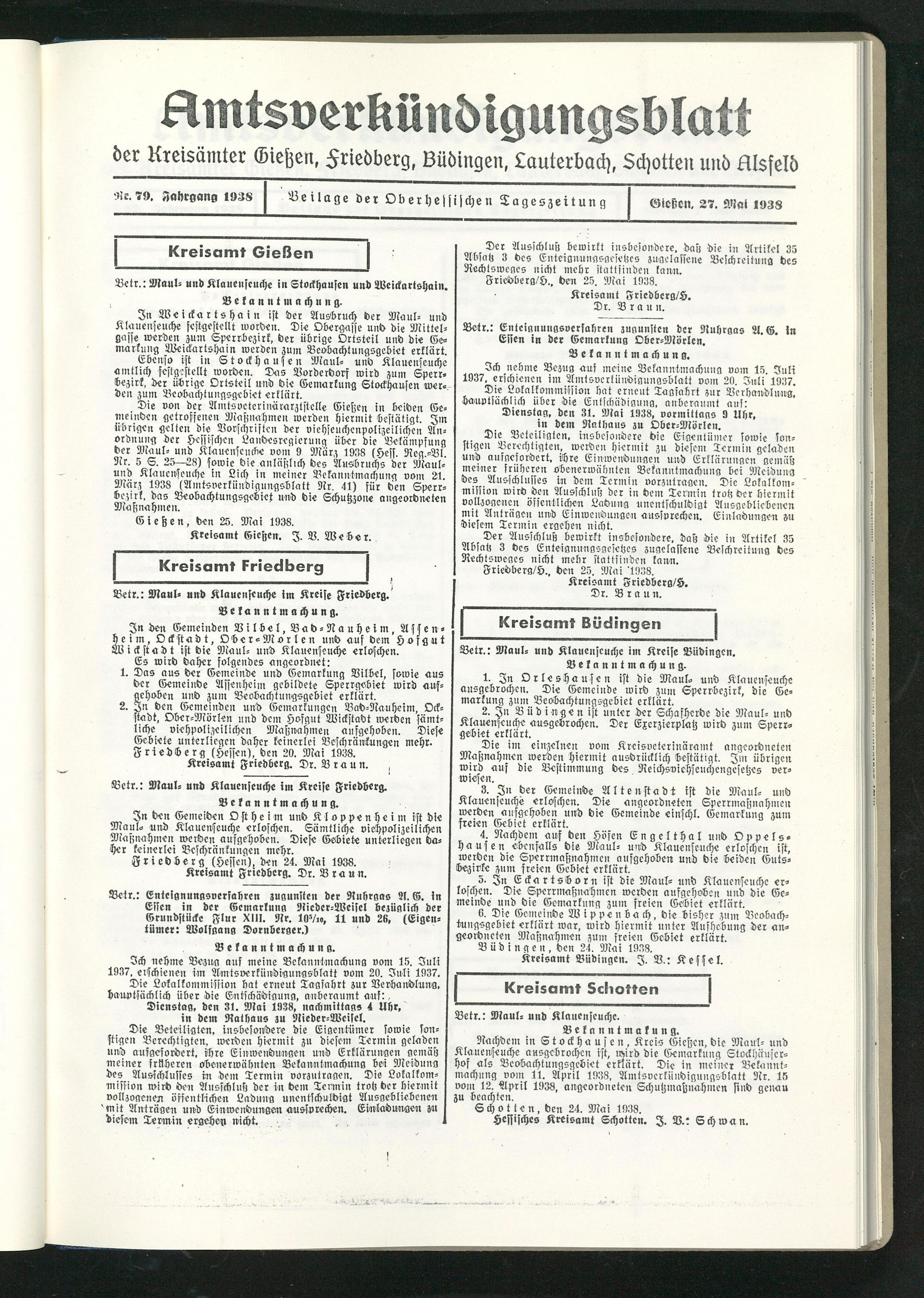 Amtsverkündigungsblatt der Landkreise Gießen, Friedberg, Büdingen, Lauterbach und Alsfeld. 1937-1939