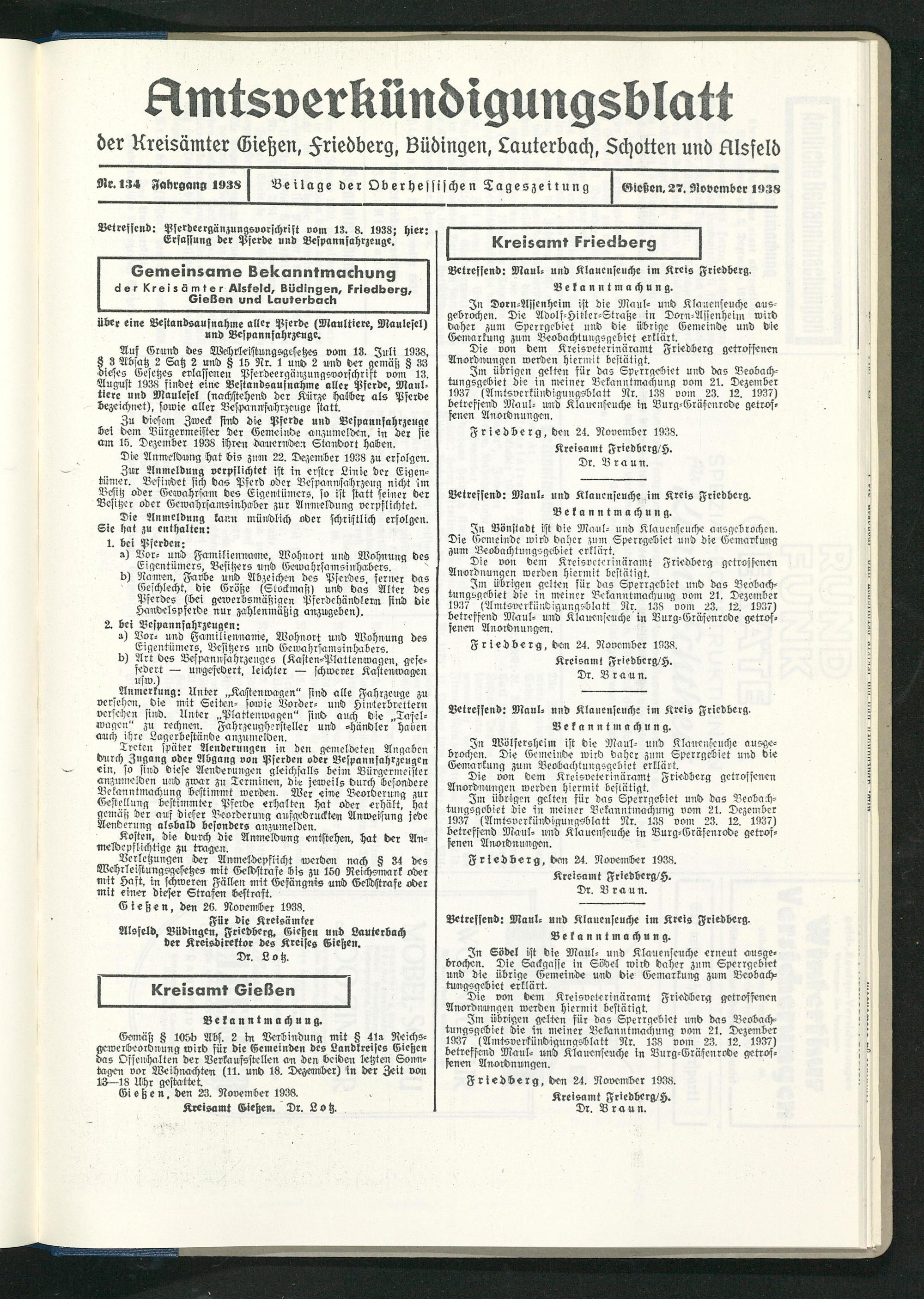 Amtsverkündigungsblatt der Landkreise Gießen, Friedberg, Büdingen, Lauterbach und Alsfeld. 1937-1939