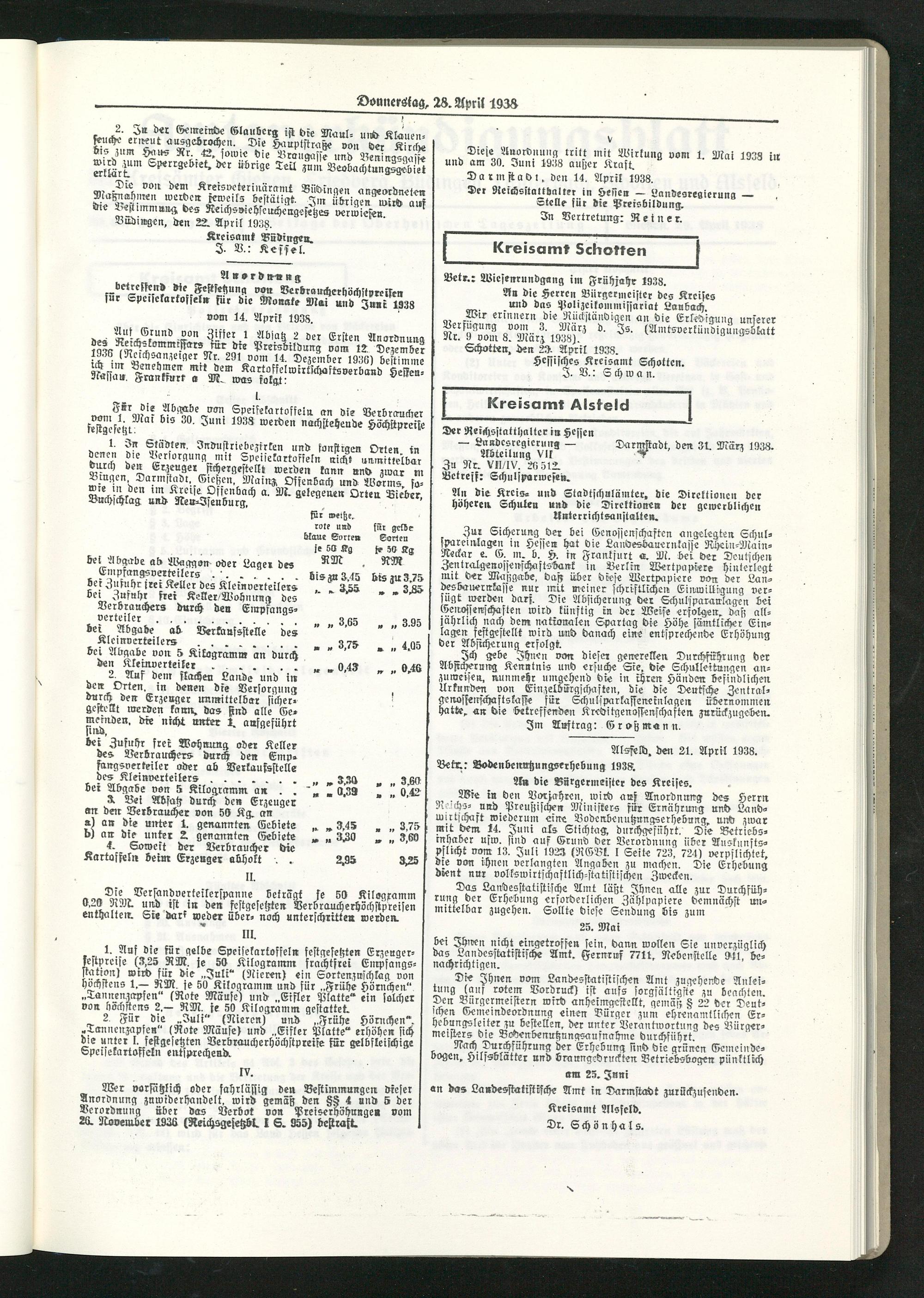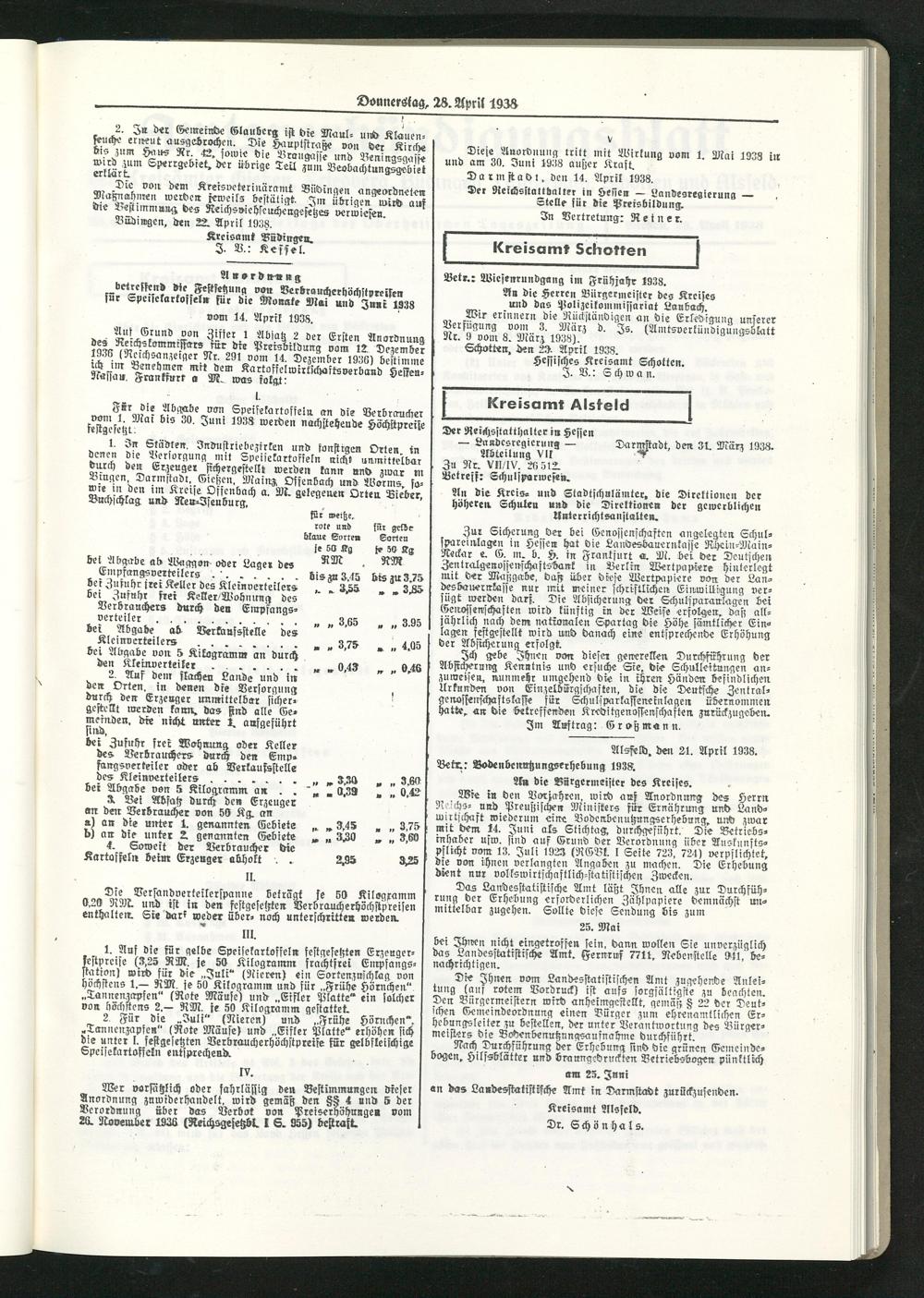 Amtsverkündigungsblatt der Landkreise Gießen, Friedberg, Büdingen, Lauterbach und Alsfeld. 1937-1939