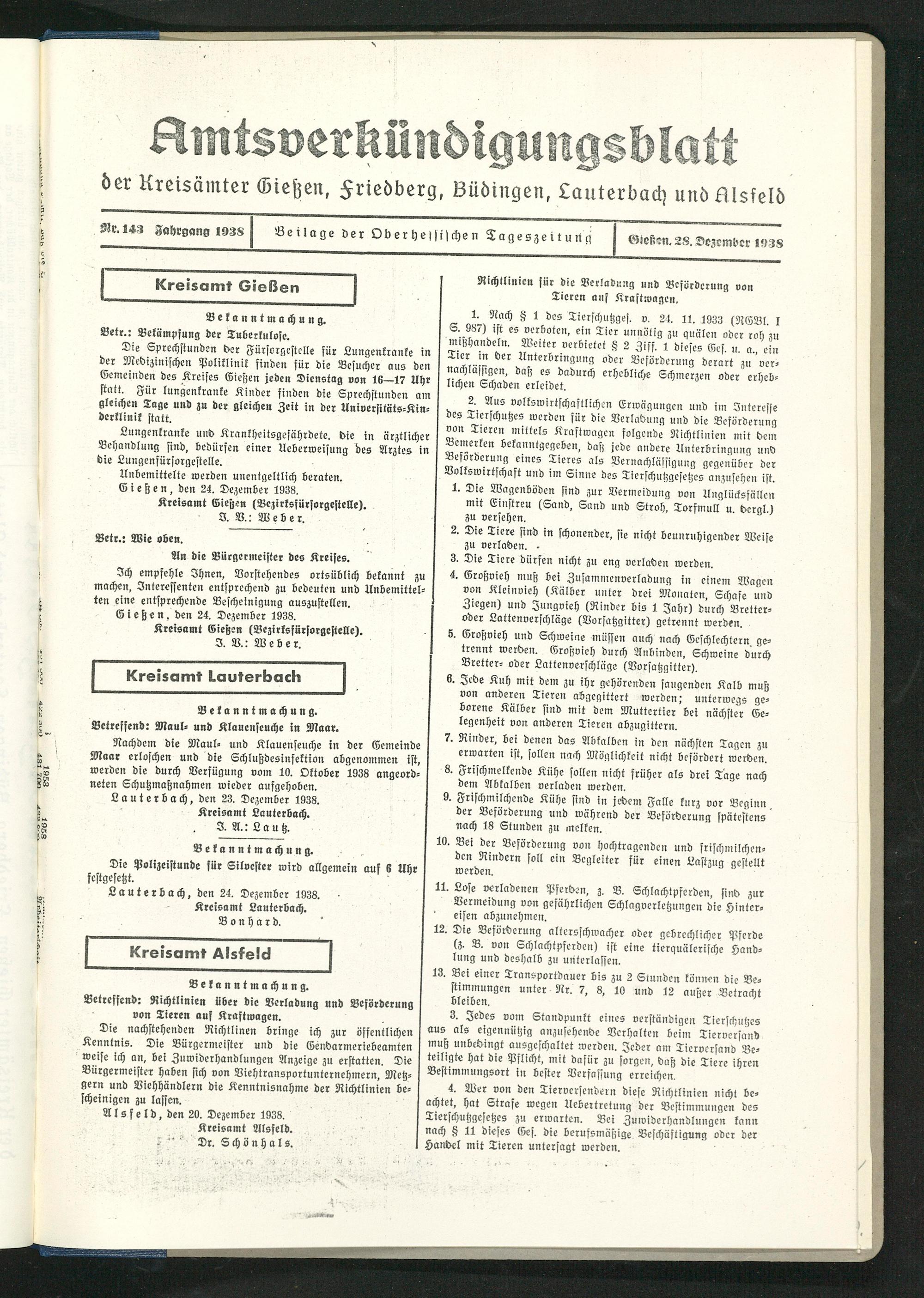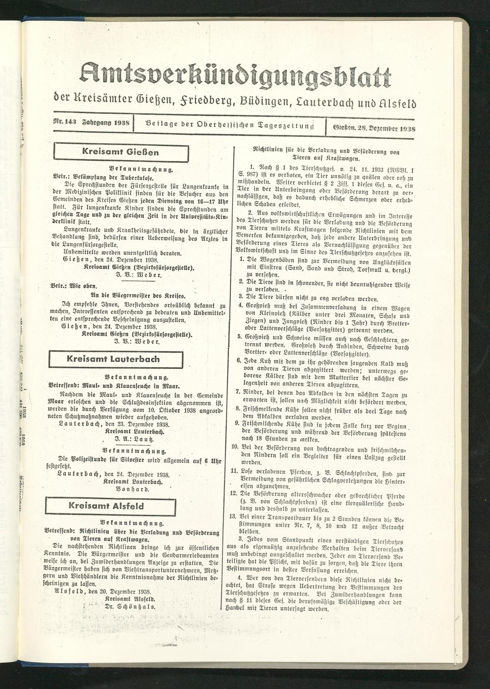 Amtsverkündigungsblatt der Landkreise Gießen, Friedberg, Büdingen, Lauterbach und Alsfeld. 1937-1939