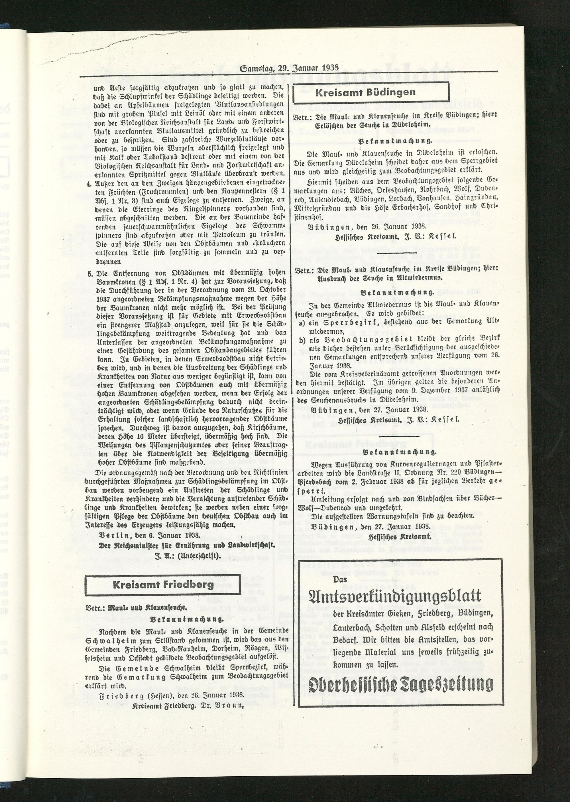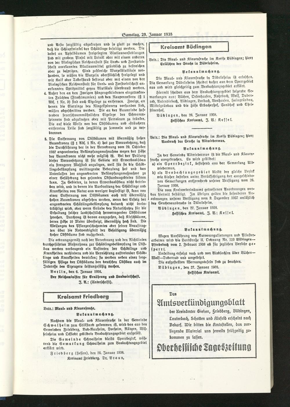 Amtsverkündigungsblatt der Landkreise Gießen, Friedberg, Büdingen, Lauterbach und Alsfeld. 1937-1939