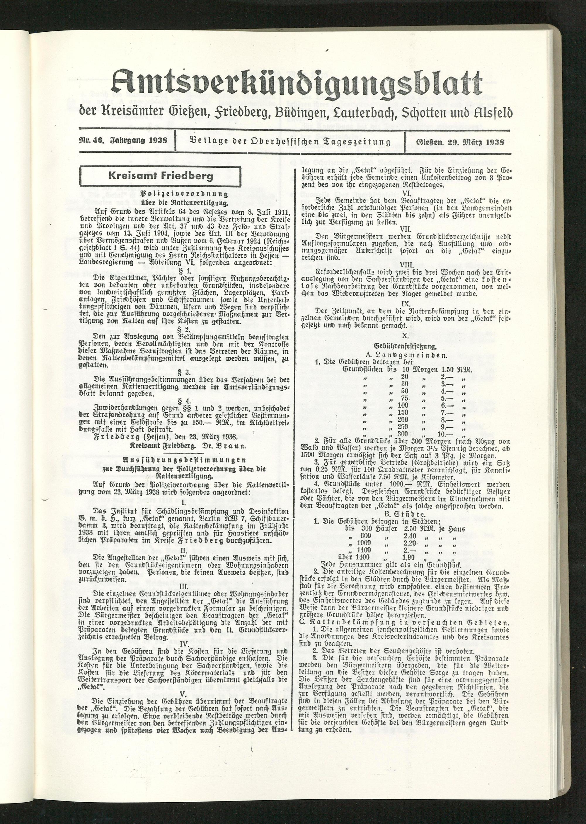 Amtsverkündigungsblatt der Landkreise Gießen, Friedberg, Büdingen, Lauterbach und Alsfeld. 1937-1939