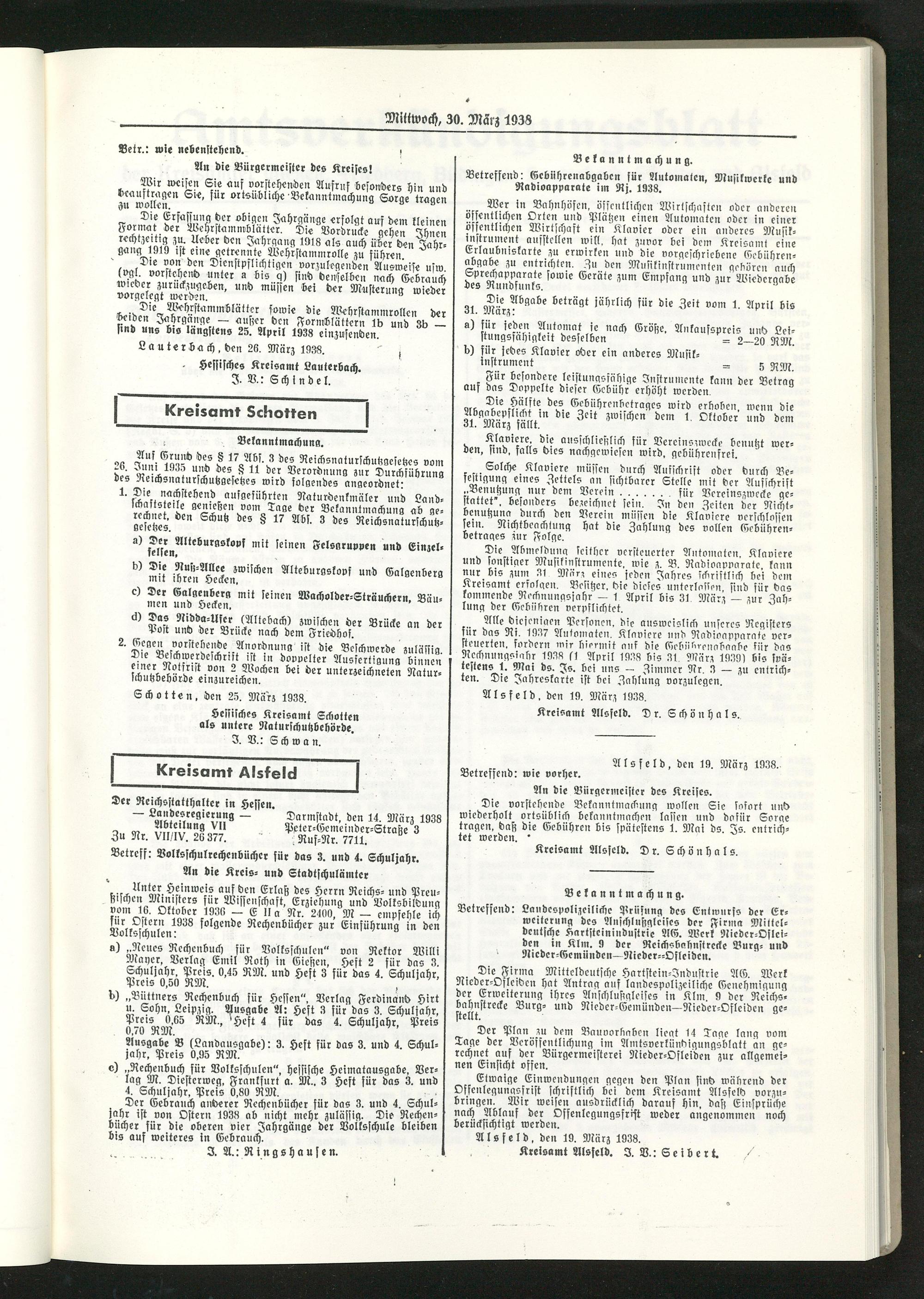 Amtsverkündigungsblatt der Landkreise Gießen, Friedberg, Büdingen, Lauterbach und Alsfeld. 1937-1939