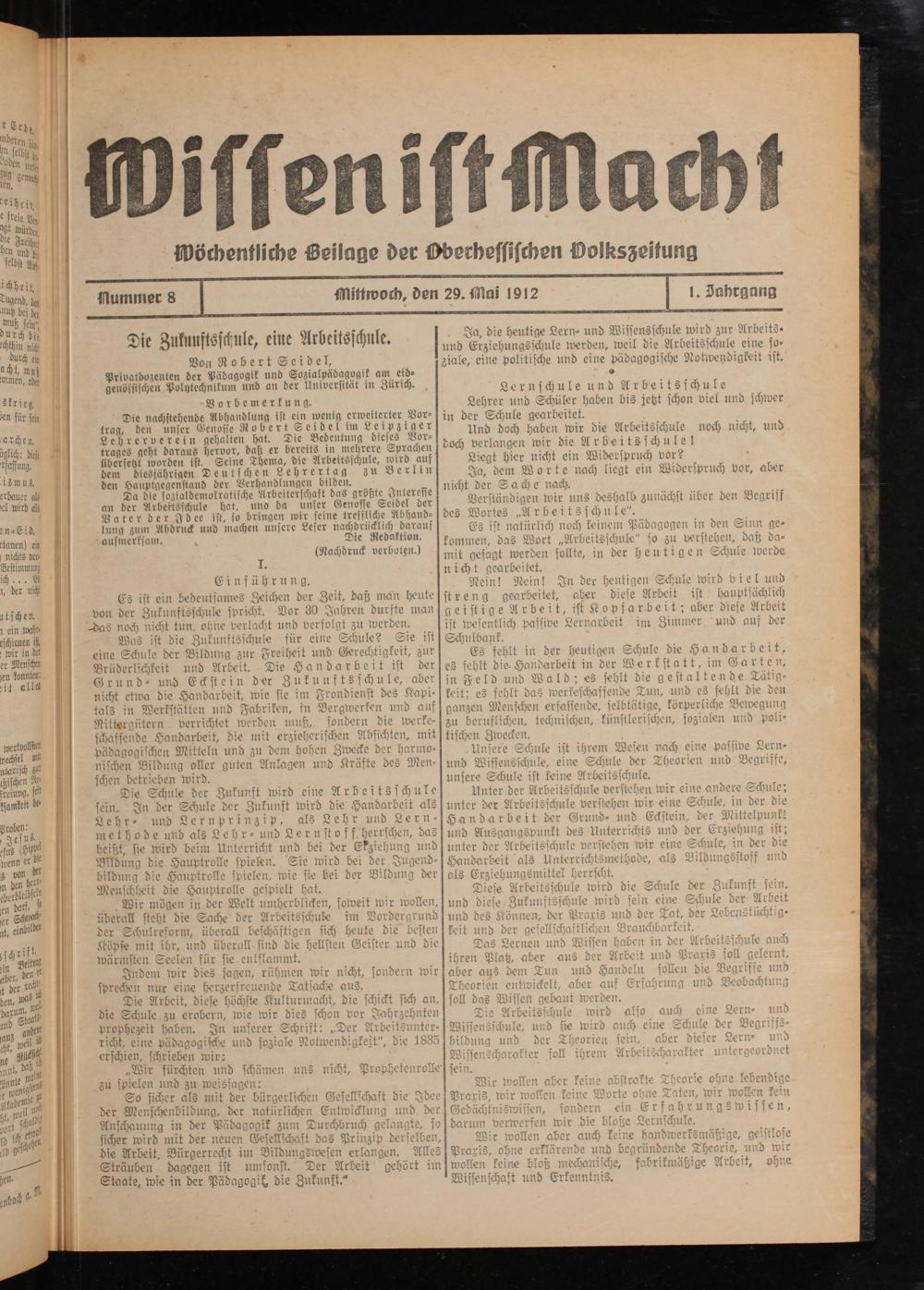 Wissen ist Macht. 1914-1914