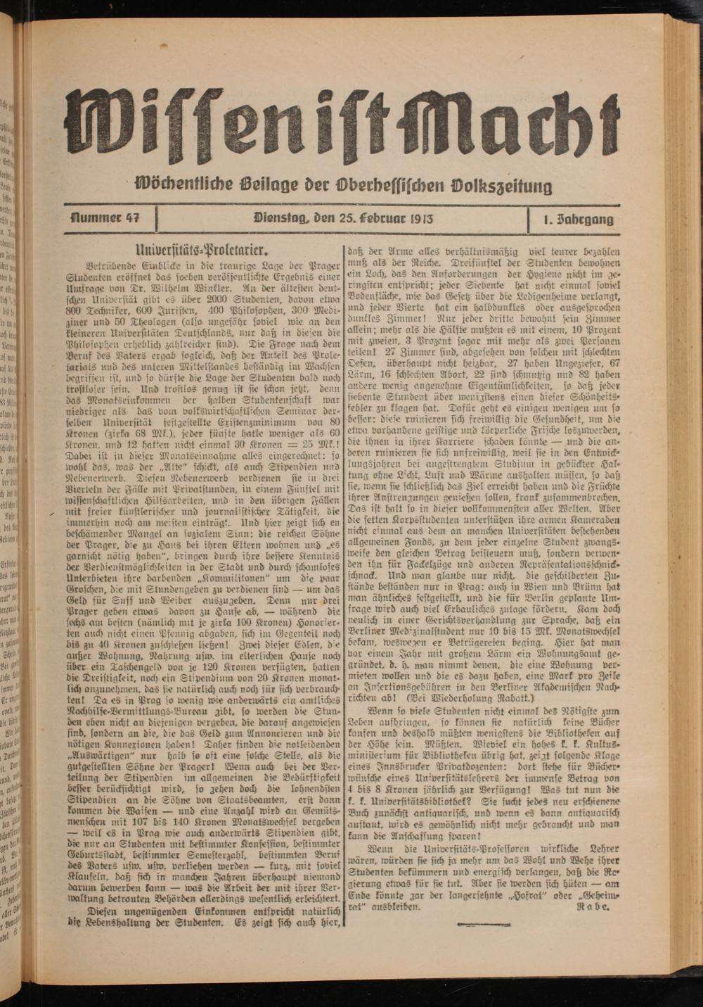 Wissen ist Macht. 1914-1914