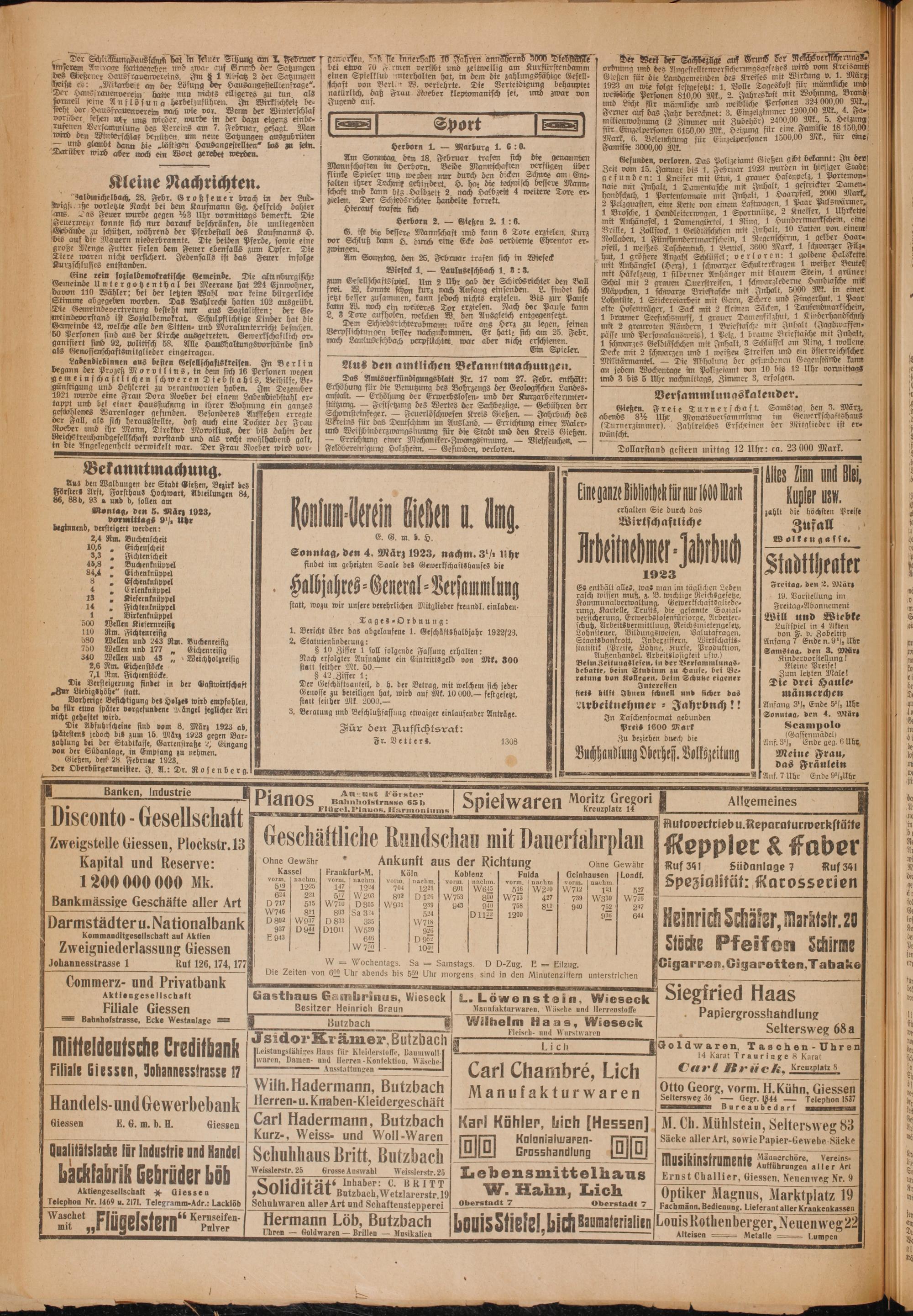 Oberhessische Volkszeitung. 1914-1923