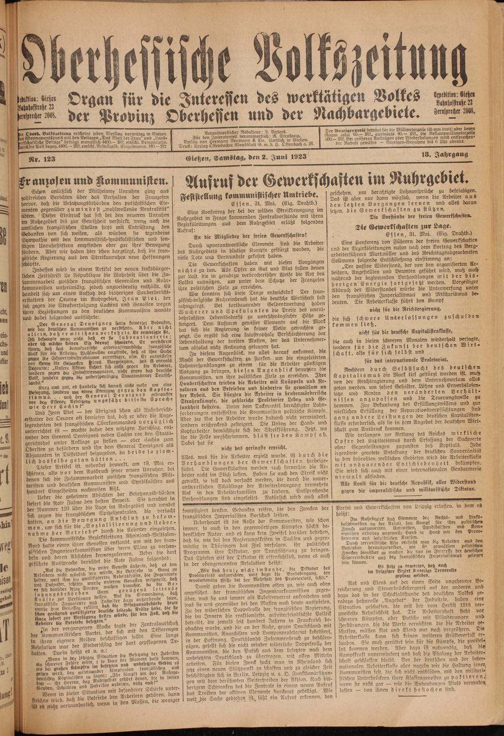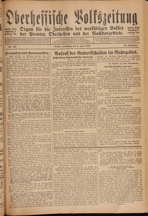 Oberhessische Volkszeitung. 1914-1923
