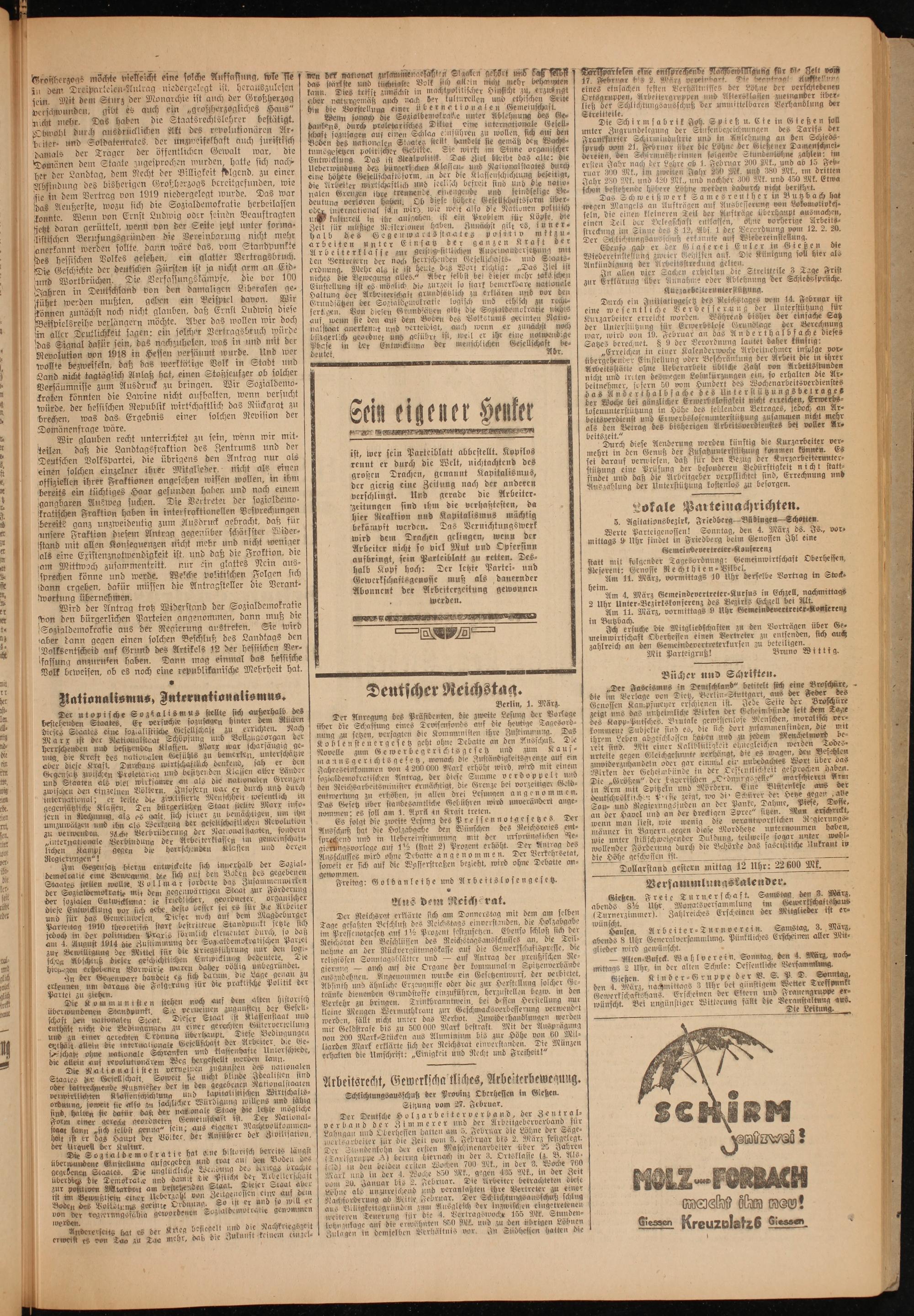 Oberhessische Volkszeitung. 1914-1923