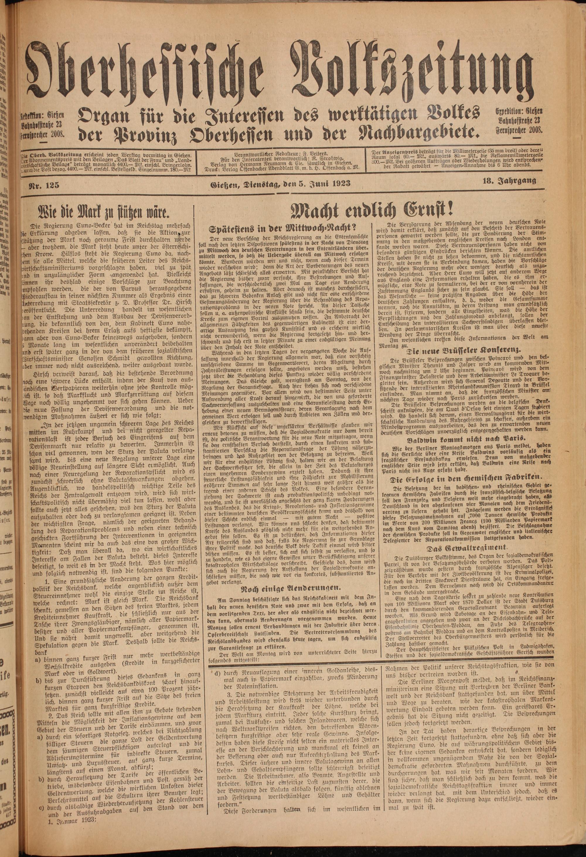 Oberhessische Volkszeitung. 1914-1923