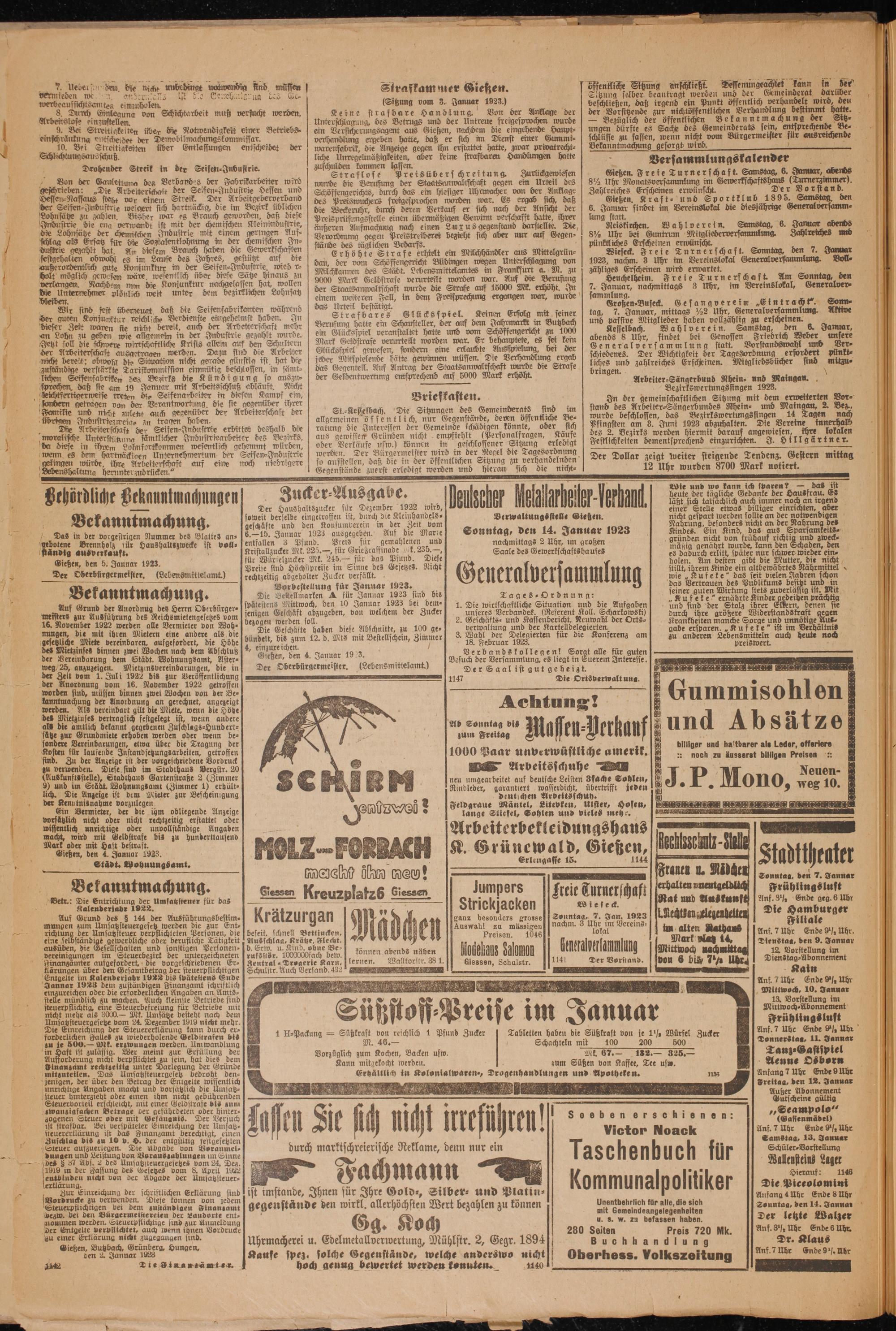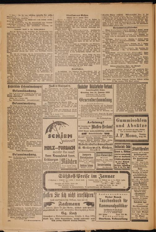 Oberhessische Volkszeitung. 1914-1923