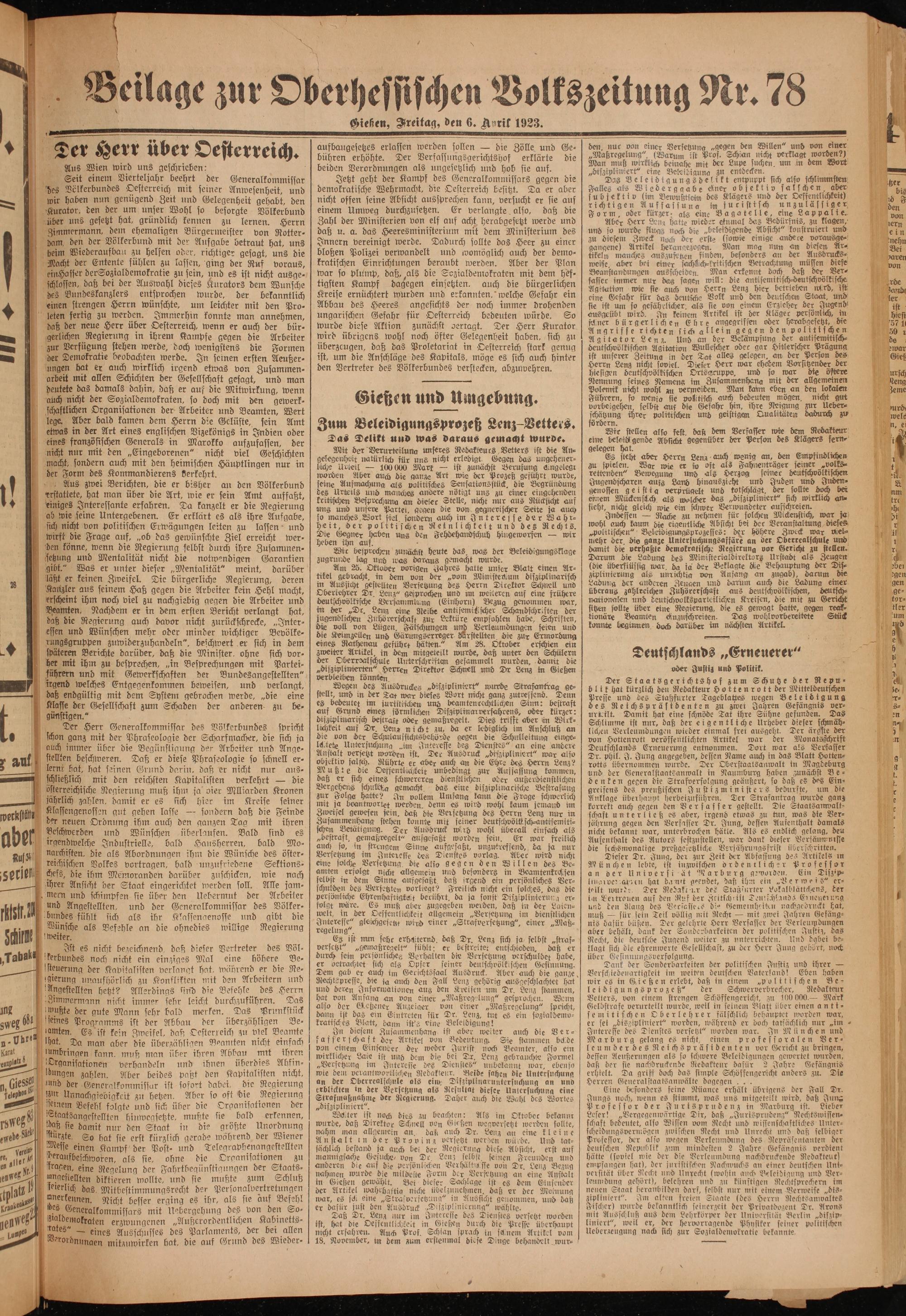 Oberhessische Volkszeitung. 1914-1923