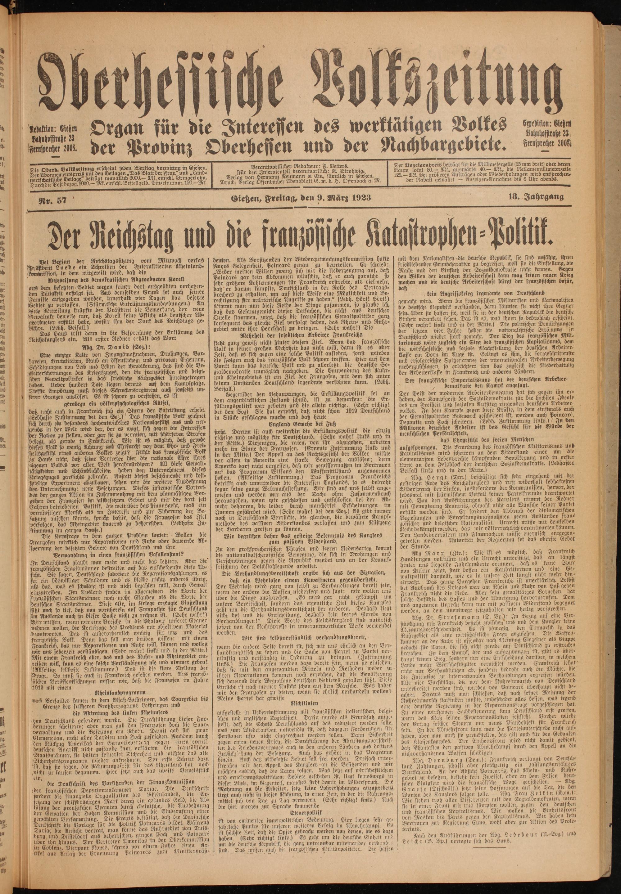 Oberhessische Volkszeitung. 1914-1923