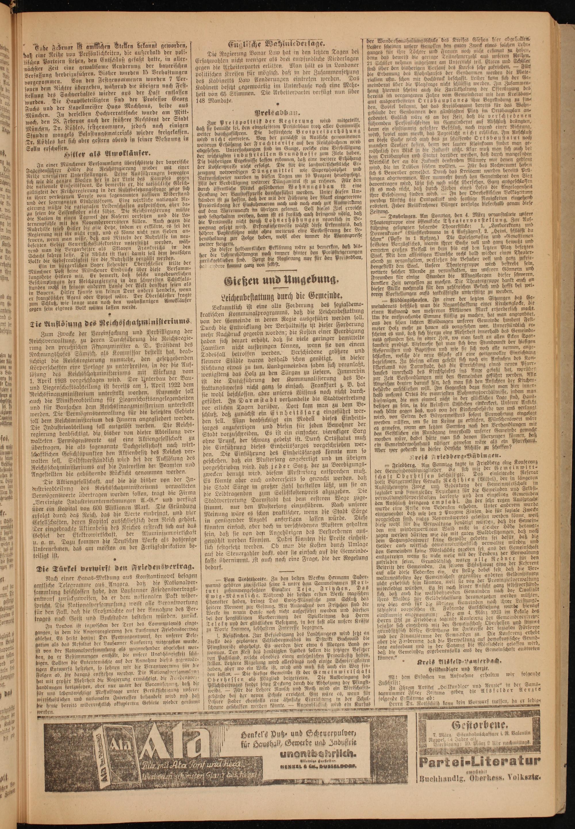 Oberhessische Volkszeitung. 1914-1923