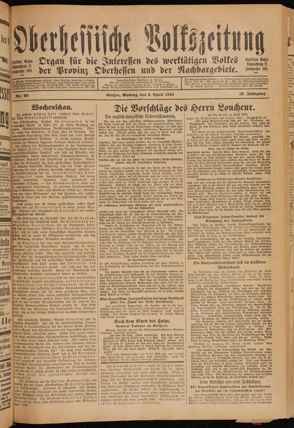 Oberhessische Volkszeitung. 1914-1923