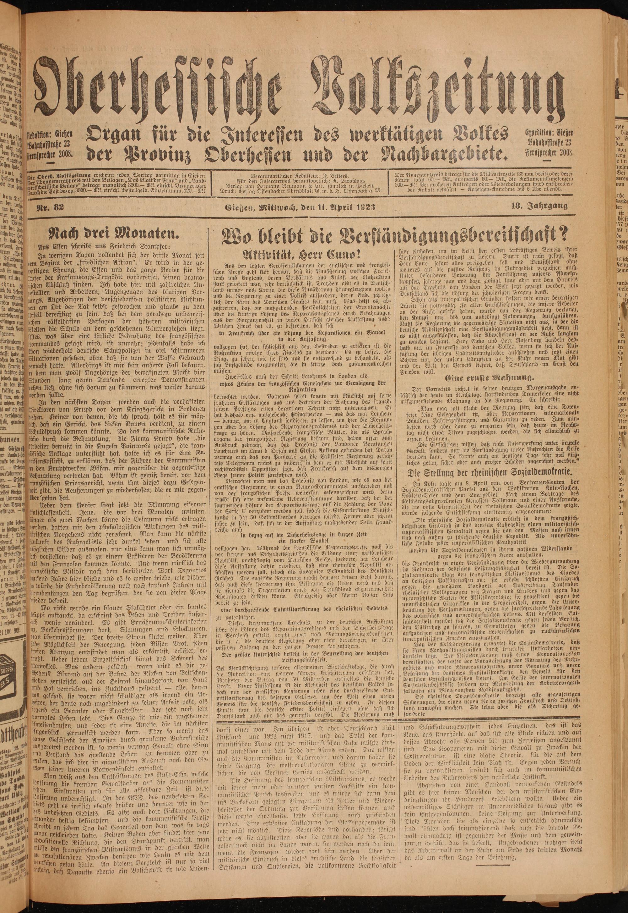 Oberhessische Volkszeitung. 1914-1923
