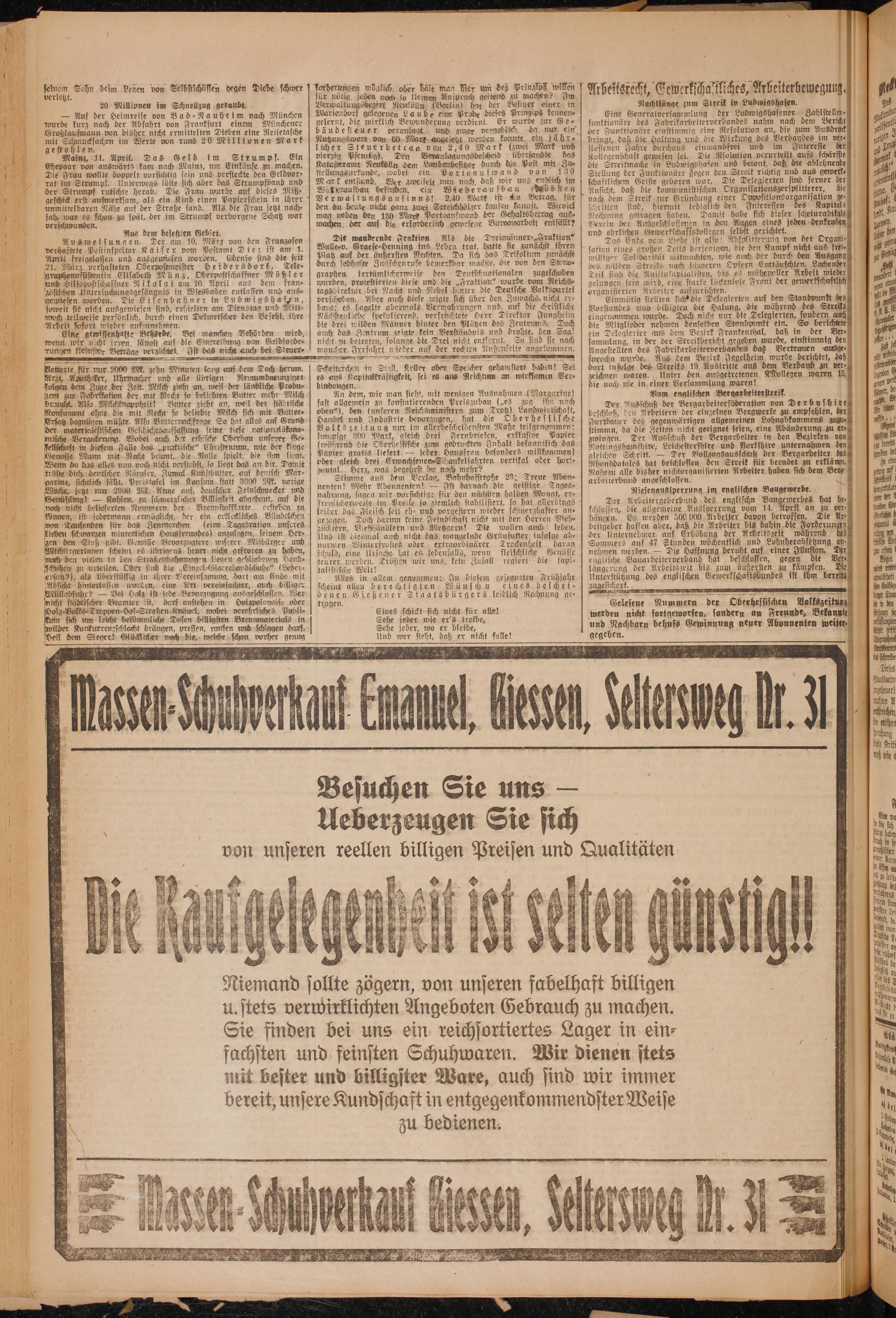 Oberhessische Volkszeitung. 1914-1923