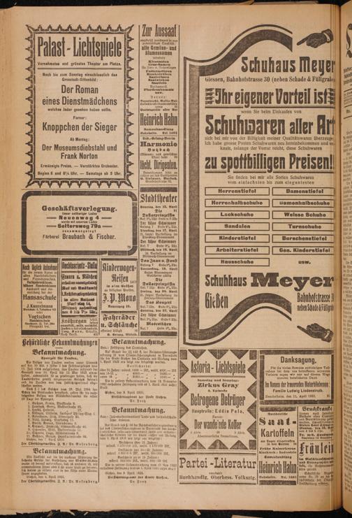 Oberhessische Volkszeitung. 1914-1923