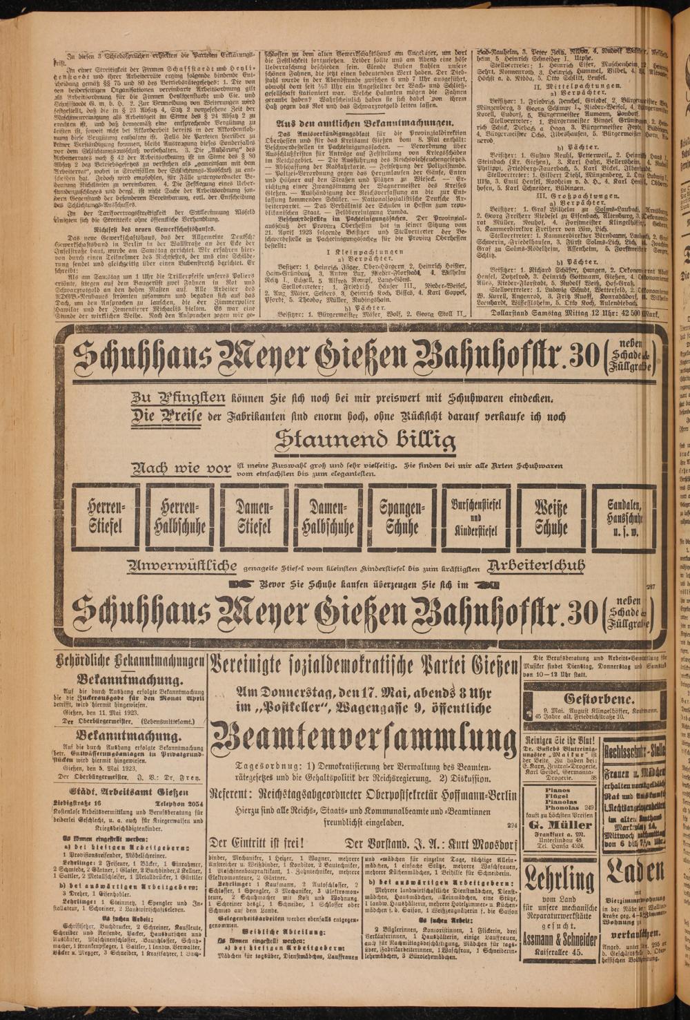 Oberhessische Volkszeitung. 1914-1923
