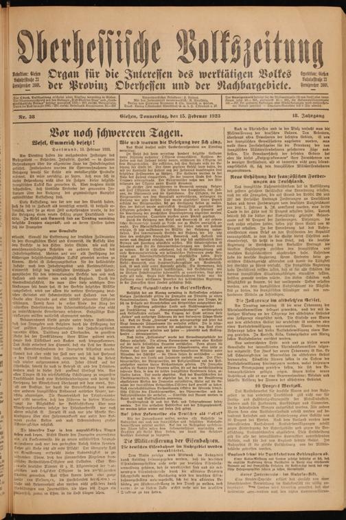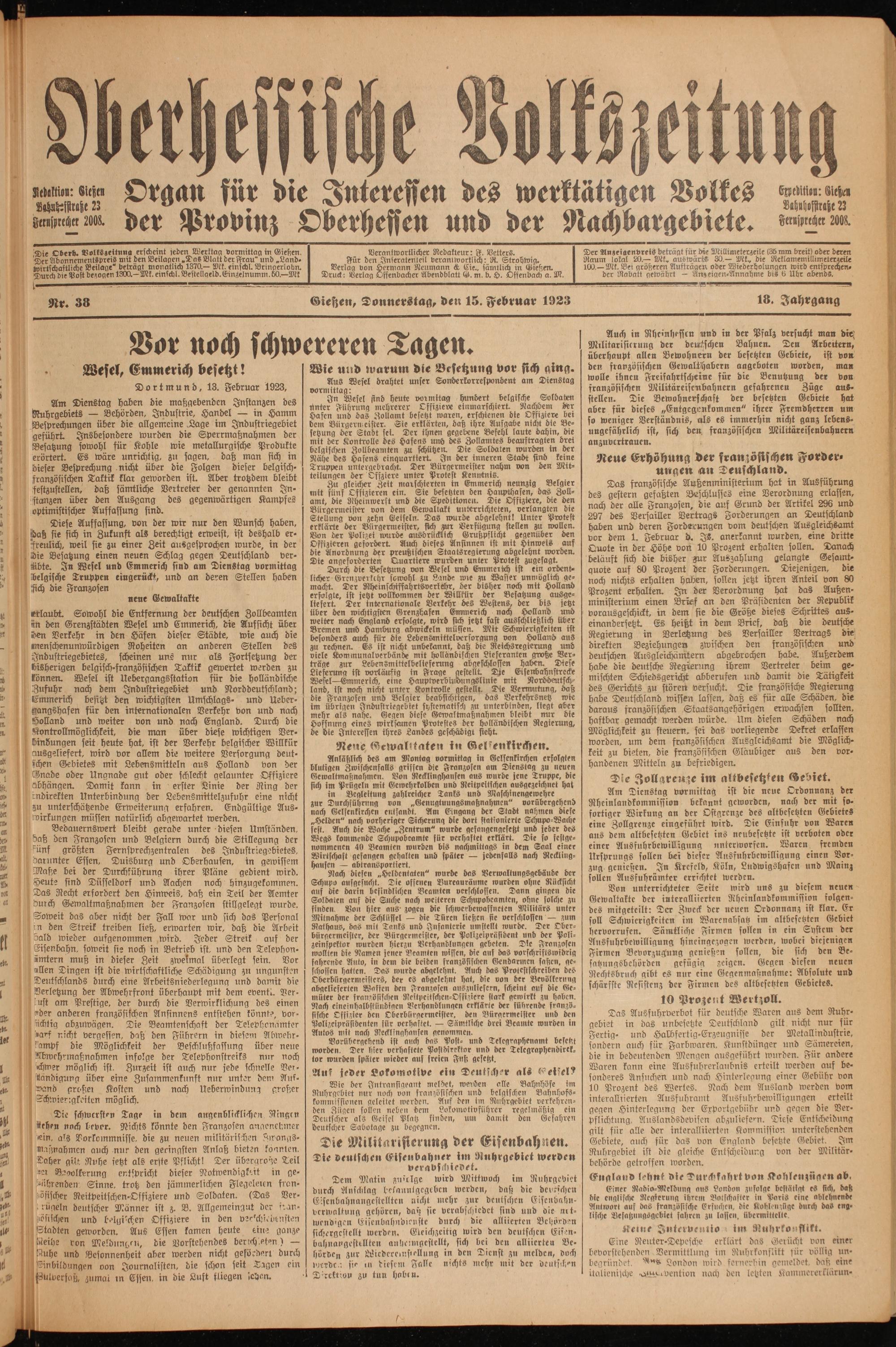 Oberhessische Volkszeitung. 1914-1923