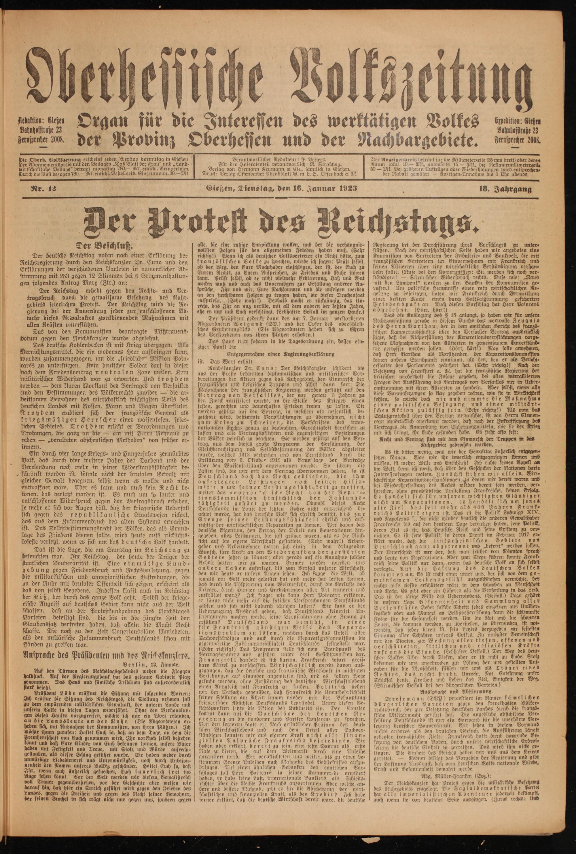 Oberhessische Volkszeitung. 1914-1923