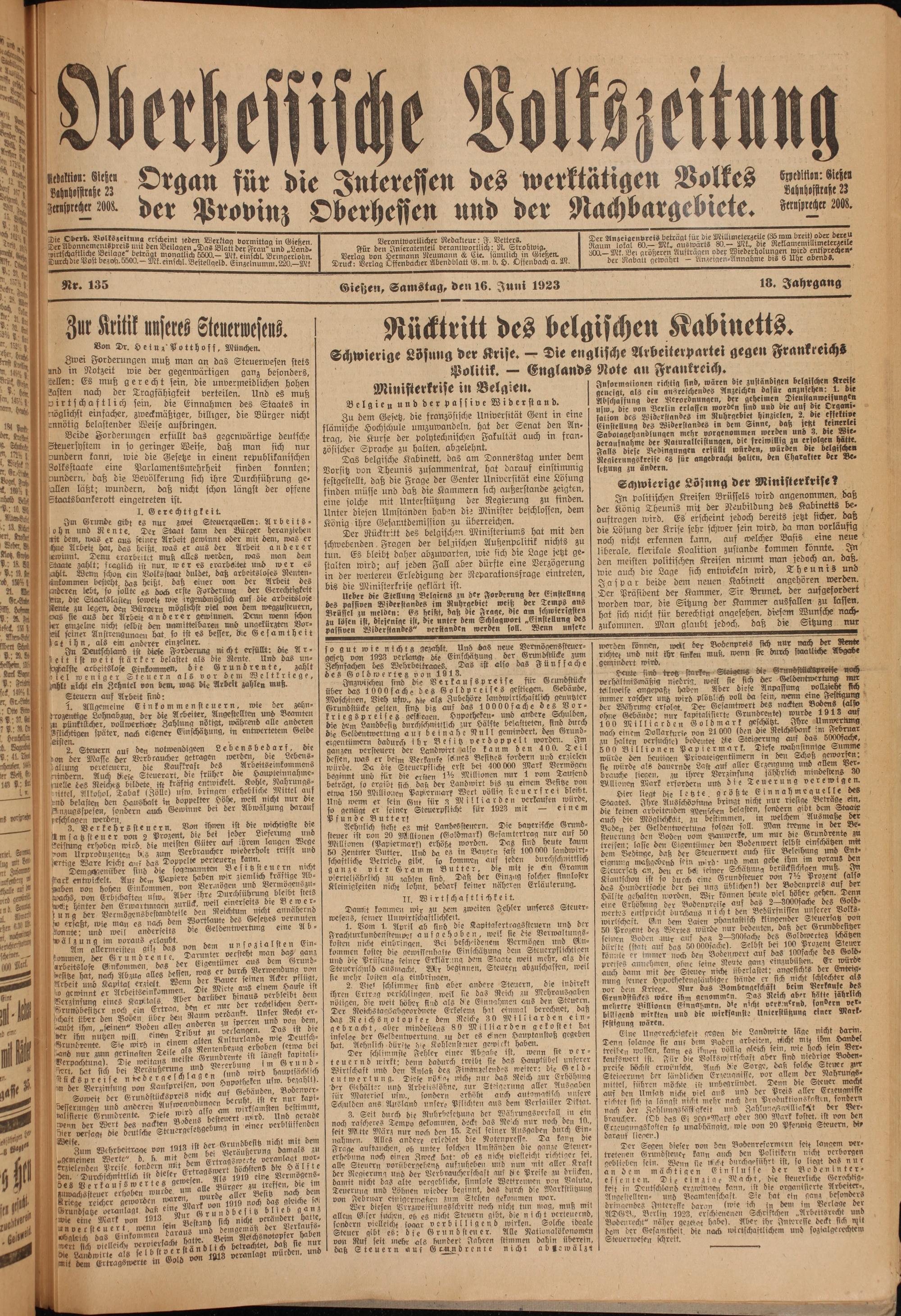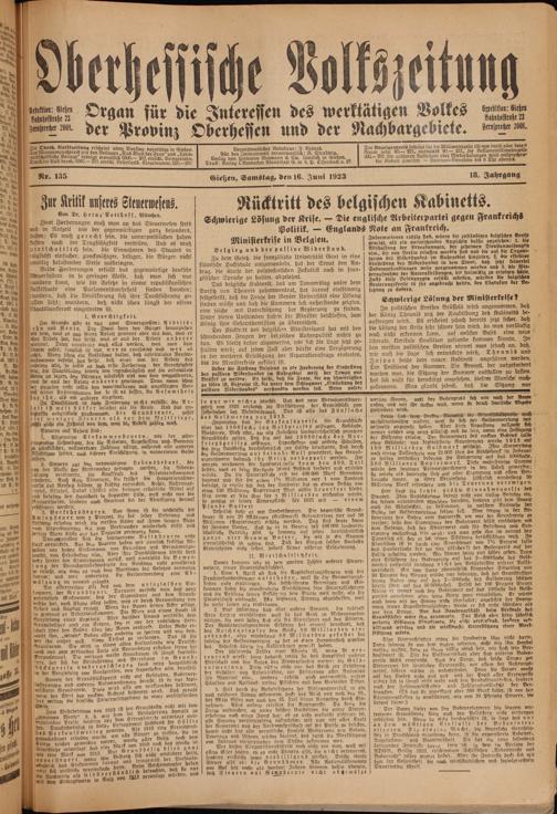 Oberhessische Volkszeitung. 1914-1923