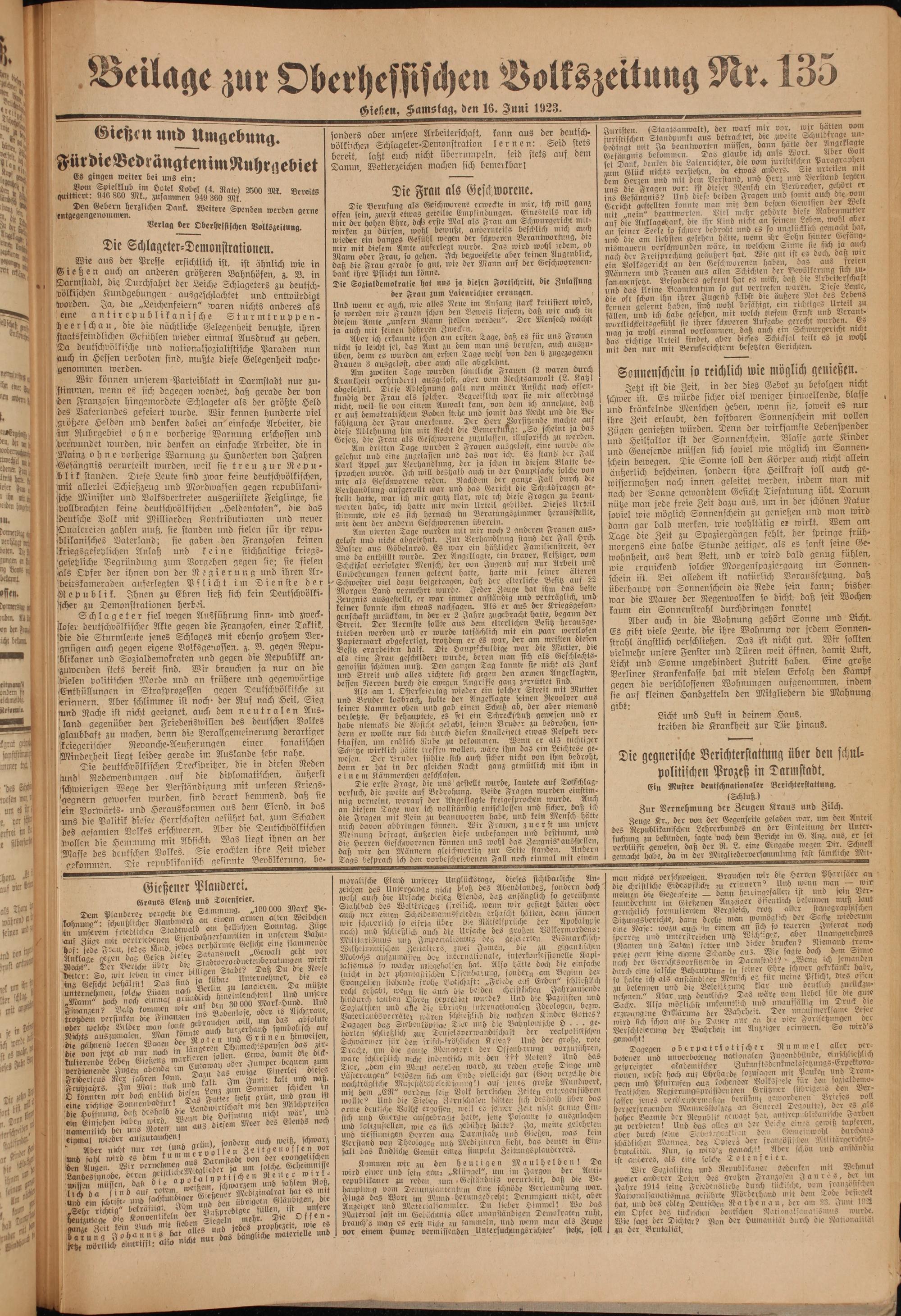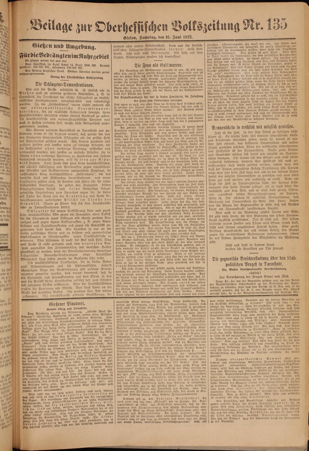Oberhessische Volkszeitung. 1914-1923