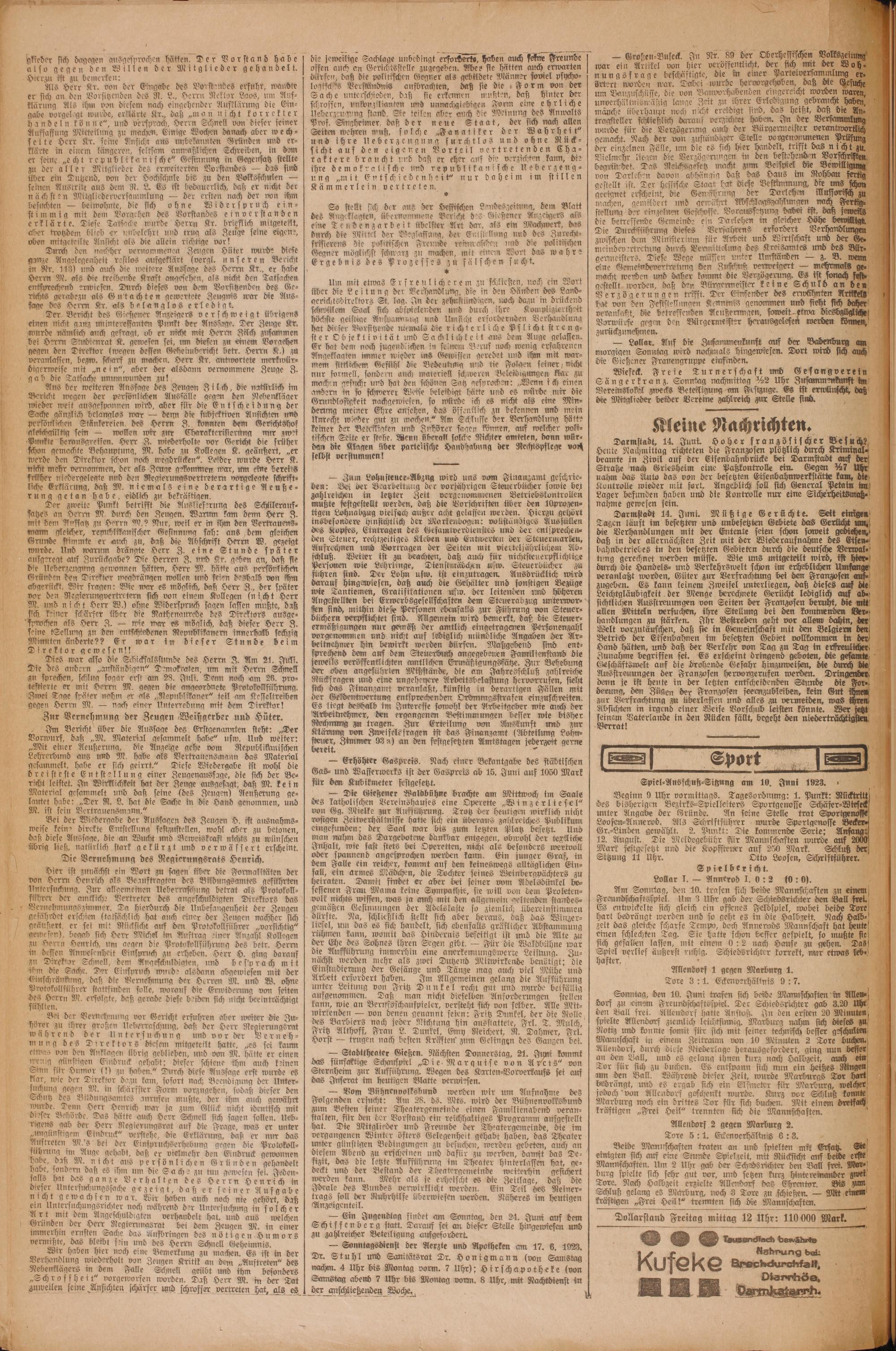 Oberhessische Volkszeitung. 1914-1923