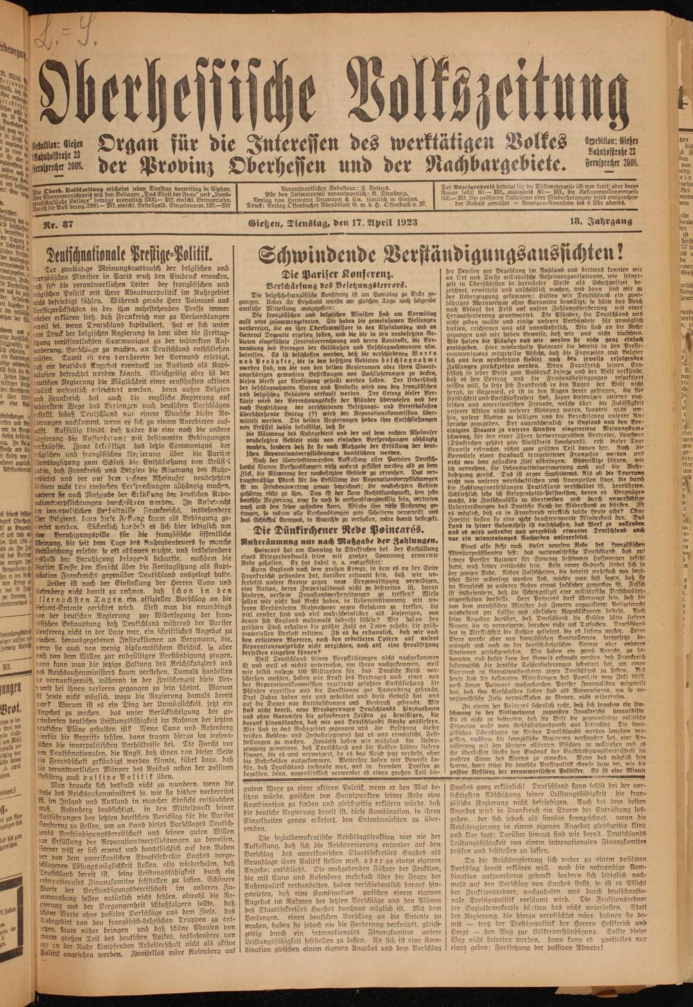 Oberhessische Volkszeitung. 1914-1923