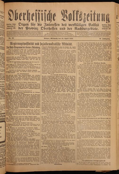 Oberhessische Volkszeitung. 1914-1923