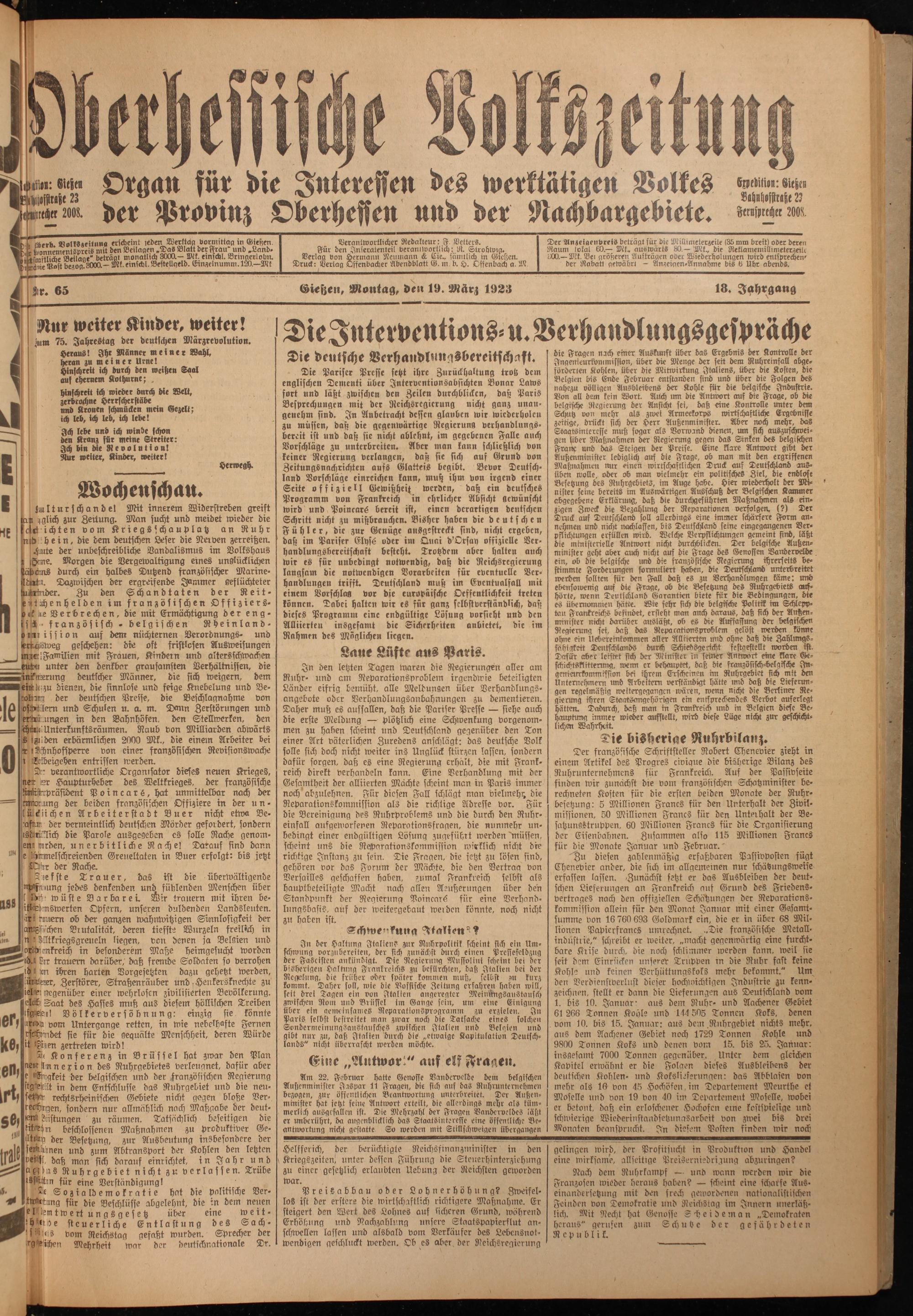 Oberhessische Volkszeitung. 1914-1923