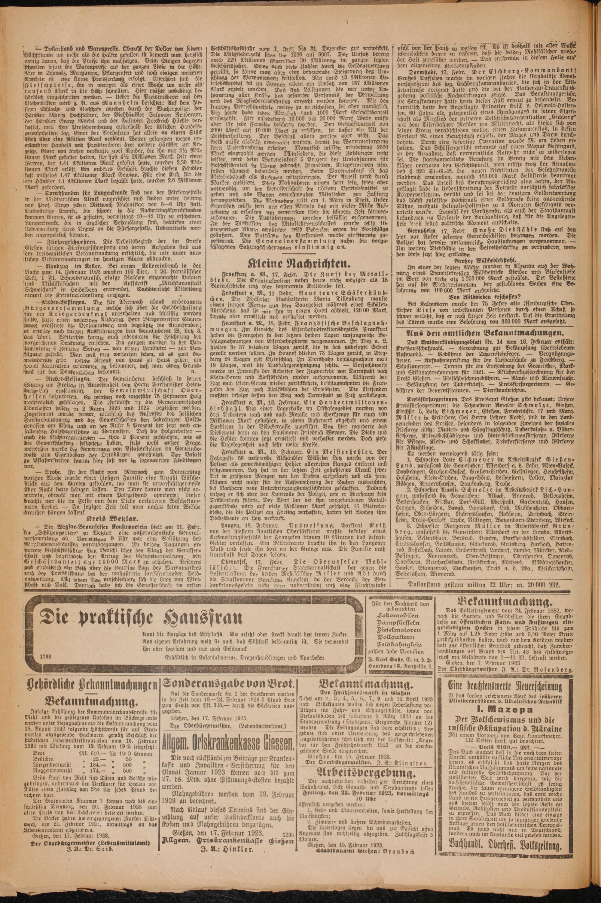 Oberhessische Volkszeitung. 1914-1923