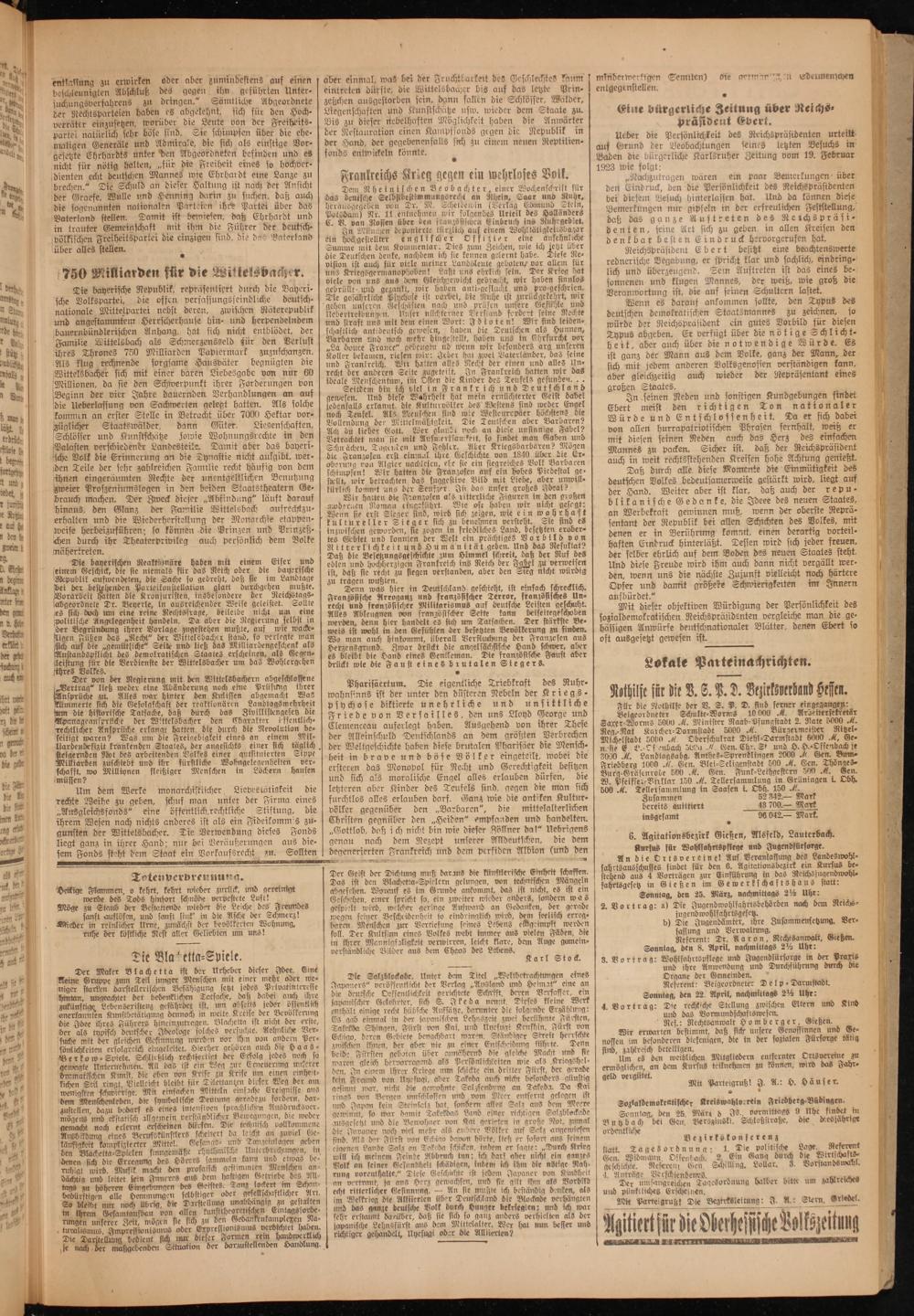 Oberhessische Volkszeitung. 1914-1923