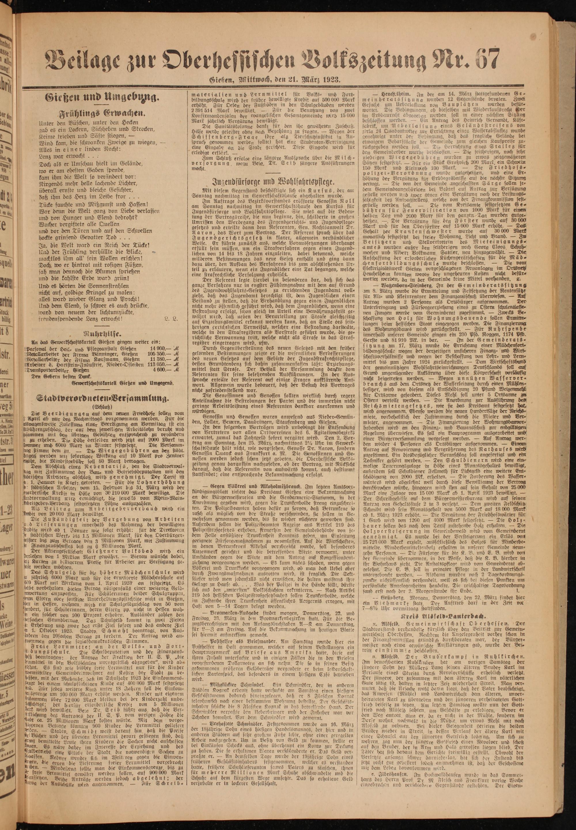 Oberhessische Volkszeitung. 1914-1923
