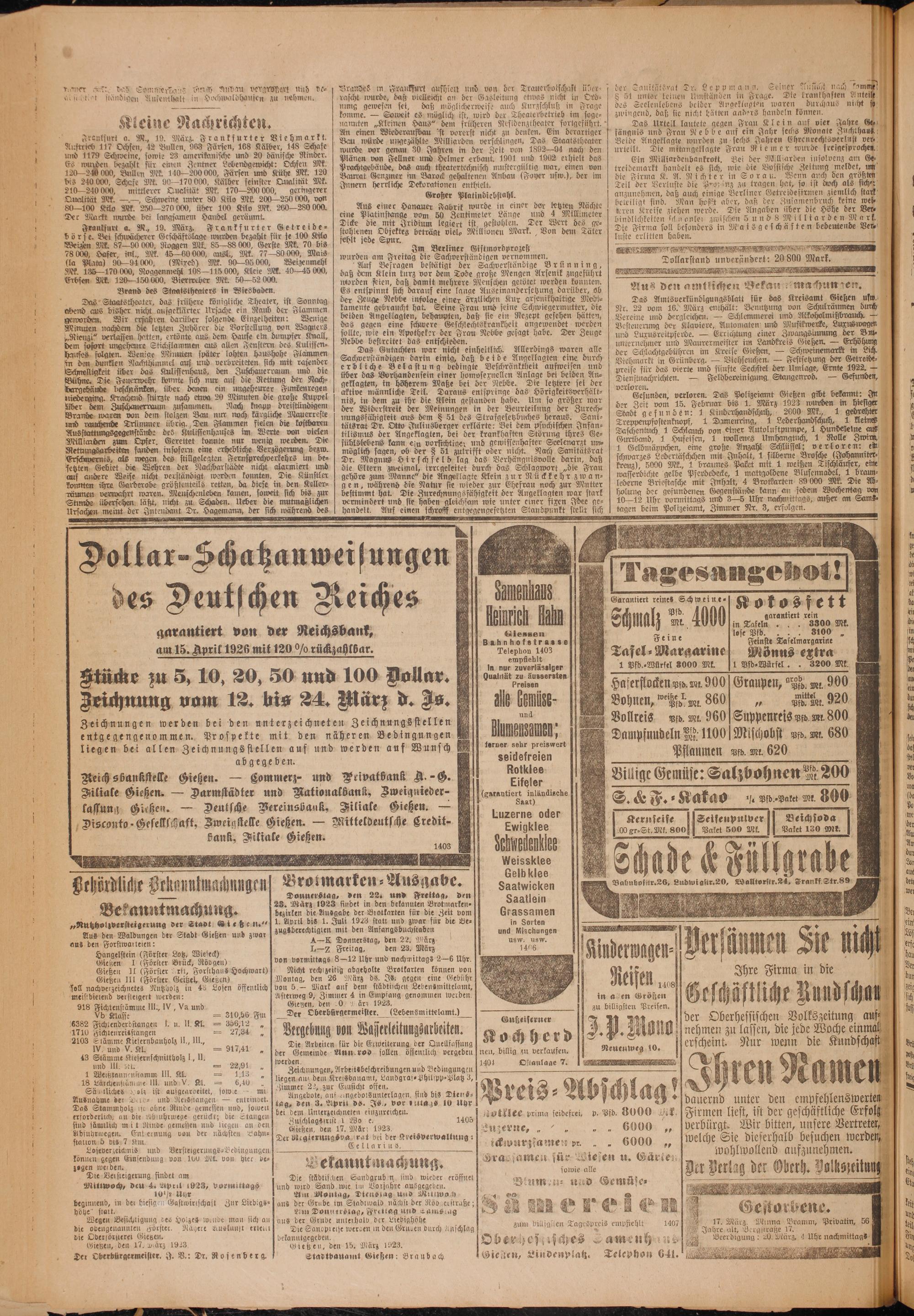 Oberhessische Volkszeitung. 1914-1923