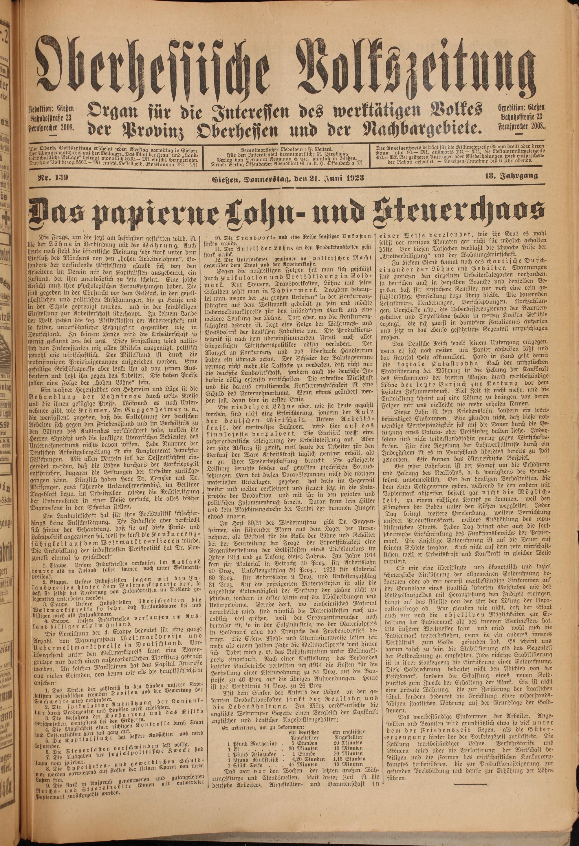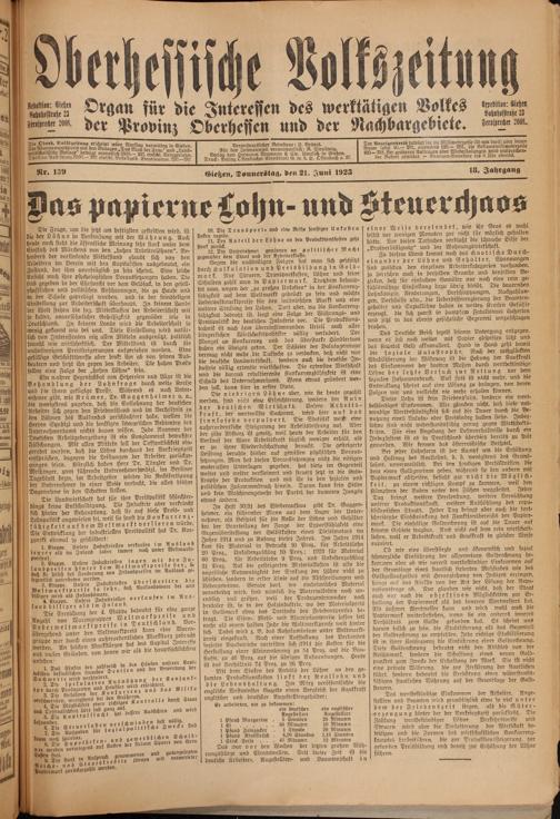 Oberhessische Volkszeitung. 1914-1923