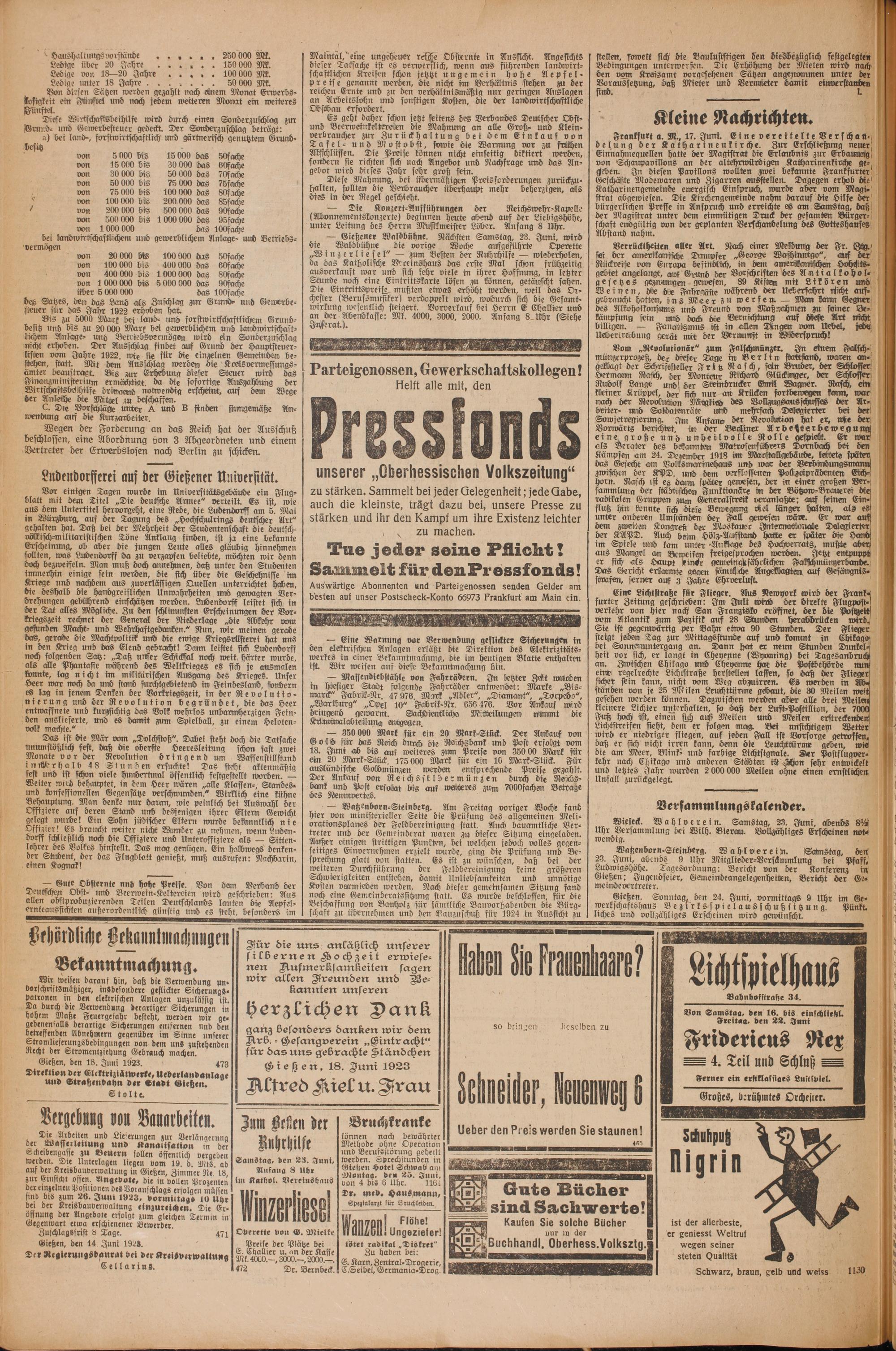 Oberhessische Volkszeitung. 1914-1923